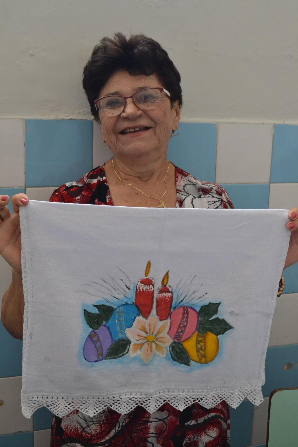 Segundo a professora, é fundamental que as participantes continuem investindo em algo que ocupe a mente e promova o bem-estar. "Trabalhamos a confecção de peças natalinas e infantis com os tecidos Oxford, pano de saco, além da pintura do nome delas em toalhinhas", conta Gileuza, artesã há mais de dez anos e ministrante pela quinta vez deste curso na Fundat.
