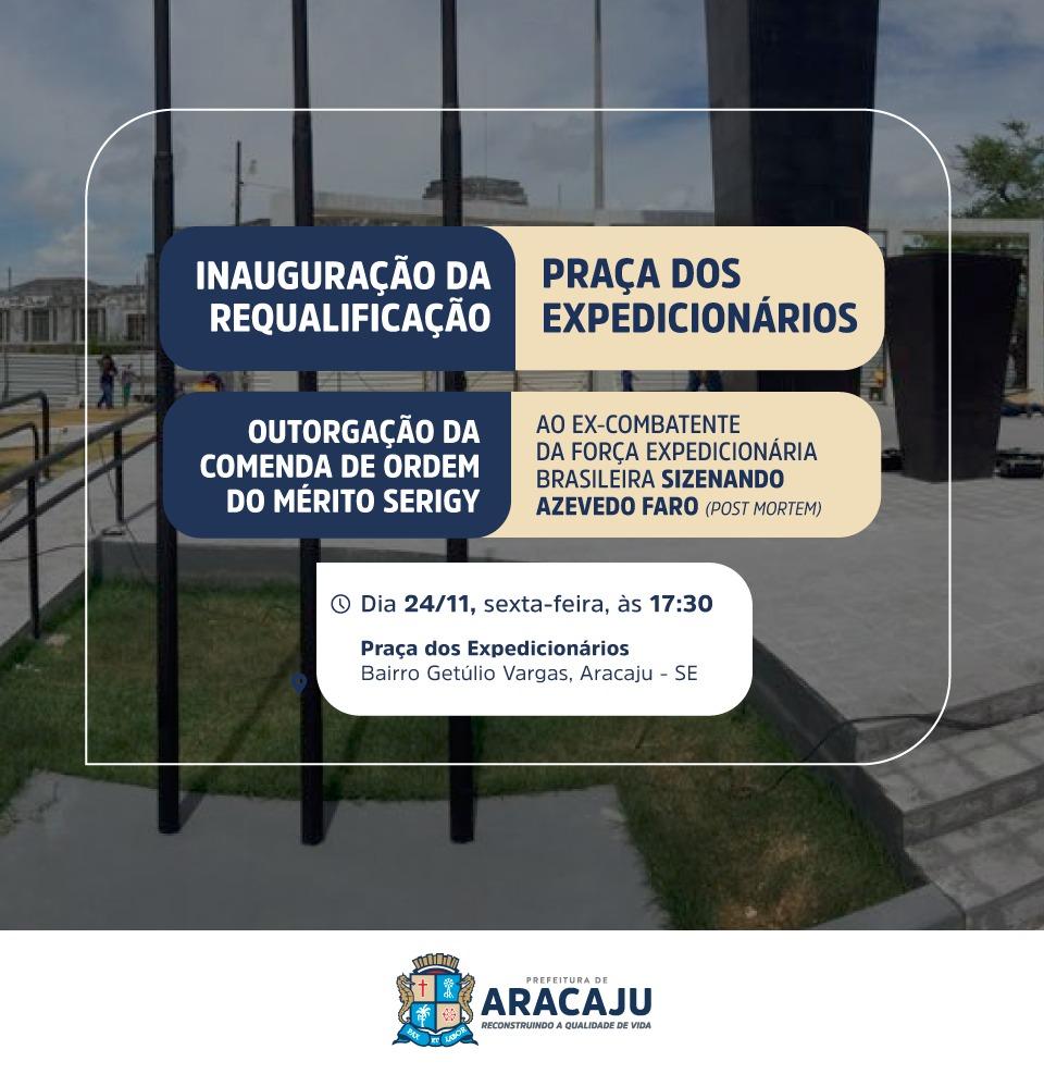O prefeito de Aracaju, Edvaldo Nogueira, e a presidente do Instituto do Patrimônio Histórico e Artístico Nacional (Iphan), Kátia Borges, convidam a população para a solenidade de requalificação da Praça dos Expedicionários na próxima sexta-feira, 24. O evento acontecerá às 17h30, na própria praça, localizada no bairro Getúlio Vargas.