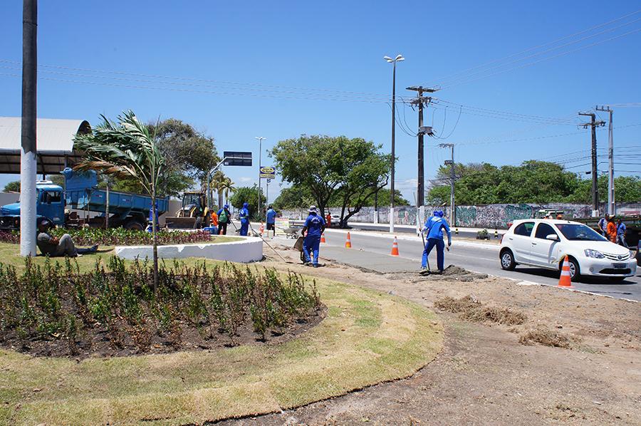Nesta terça-feira, 5, um dos locais contemplados na programação da Diretoria de Operações da empresa municipal, foi a avenida Júlio César Leite, bairro Aeroporto. Apresentando desgaste nas calçadas e outros problemas na estrutura da rótula, foi necessário um trabalho de restauração e reconstrução do local, além de ajardinamento e pintura, melhorando sinalização e embelezando a área.