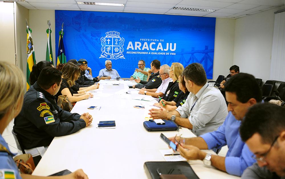 O presidente da Funcaju, Silvio Santos, reuniu representantes de órgãos públicos para montar um plano de ações a serem aplicadas no dia 31 de dezembro, no trajeto e nas imediações da Orla de Atalaia, que mais uma vez será palco da Festa de Virada de Ano. Órgãos como Polícia Militar, Serviço de Atendimento Móvel de Urgência (Samu), Superintendência Municipal de Transportes e Trânsito (SMTT) e a Empresa Municipal de Obras e Urbanização (Emurb) estiveram no encontro e se colocaram à disposição.