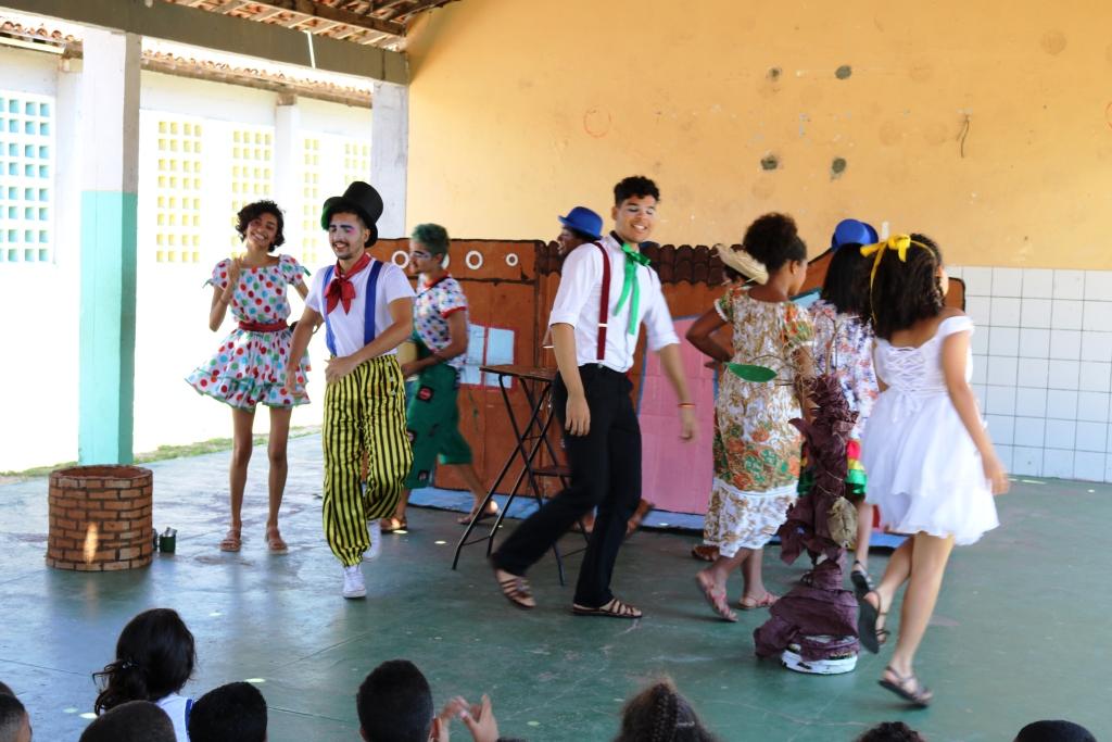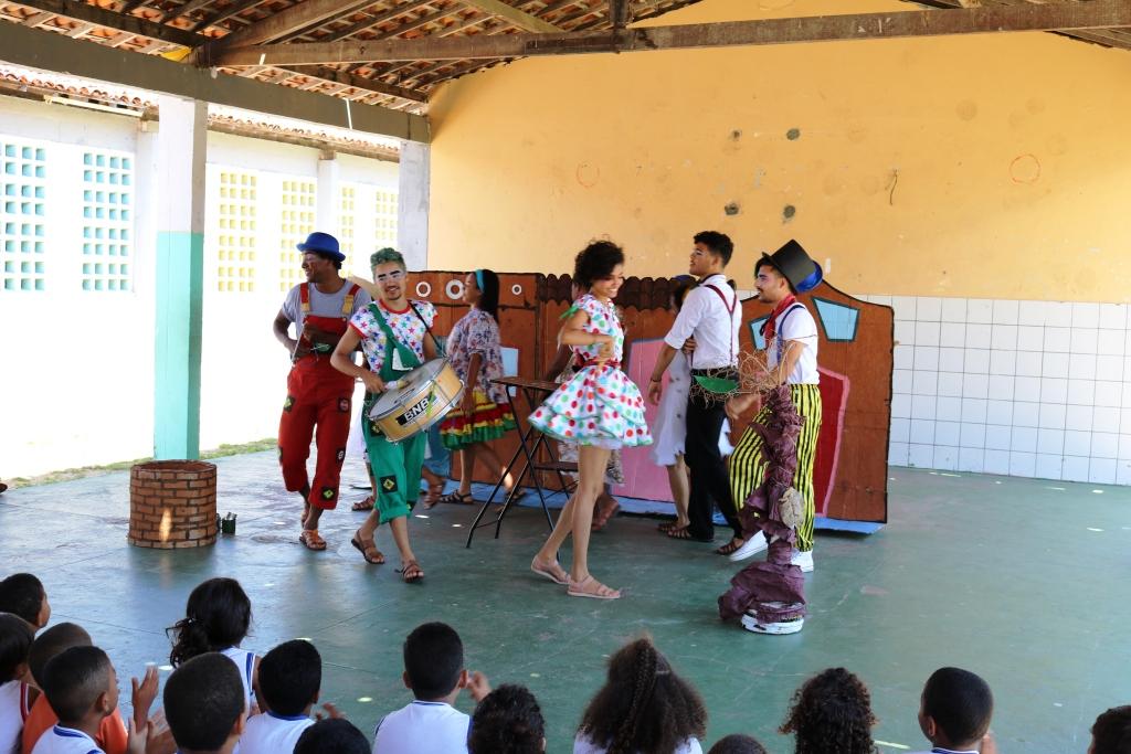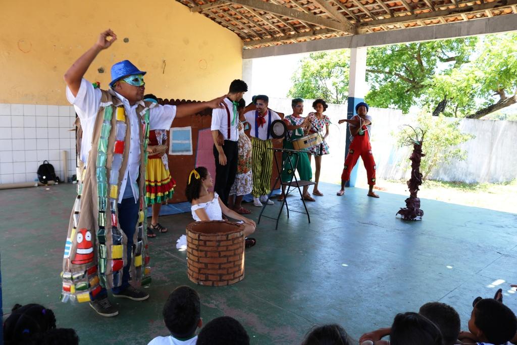 Crianças de um a seis anos de idade assistiram à peça teatral que conta a história de um nordestino e sua saga na busca por água em meio à seca. No caminho, ele é atropelado por um motorista distraído e todos os amigos se juntam em orações e fé na esperança de sua volta em segurança para casa.