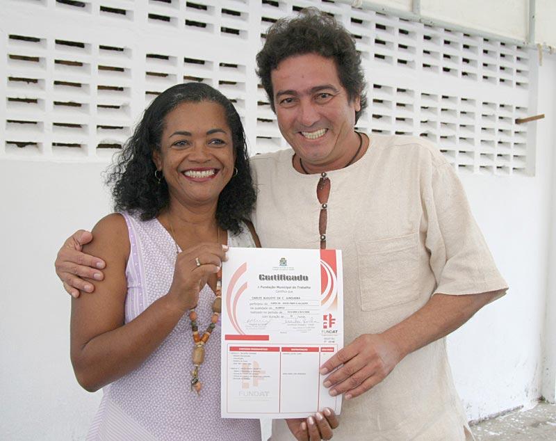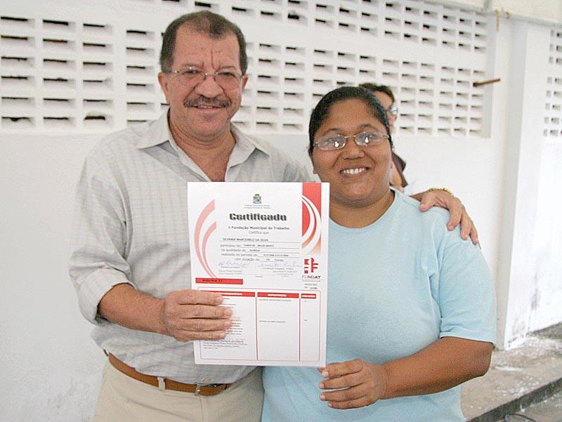 Satisfação e a certeza do dever cumprido foram os sentimentos demonstrados pelos 200 concludentes e instrutores, durante a entrega dos certificados de conclusão de cursos profissionalizantes que aconteceu durante a tarde desta terça-feira, na unidade da Fundação Municipal do Trabalho (Fundat), localizada no Jardim Esperança. No evento foram entregues os certificados em diferentes cursos, como, inglês, doces e salgados finos, espanhol, informática e bolos, tortas e pizzas. Segundo a instrutora Vânia Maria Lima, essa é uma grande oportunidade para ensinar e também aprender. O trabalho é uma troca de conhecimentos. A turma foi maravilhosa e vai deixar saudades. Já tem gente trabalhando na área e eu fico muito feliz por isso, afirma. A instrutora ressalta ainda que no curso já havia profissionais da área, mas que estavam procurando se aperfeiçoar. Muitos já estão começando a abrir novos empreendimentos, outros já estão em busca do emprego em padarias, delicatesses, o que nos mostra que o resultado foi melhor que o esperado, explica. A estudante Thatiana Gonçalves da Silva é um exemplo. Há mais de um ano ela produz alimentos para vender, desde quando concluiu o curso de congelamentos no ano passado. Este é o segundo curso que faço e já aproveitei para aumentar a renda. Agora vendo congelados, bolos, tortas e pizzas, diz. De acordo com o presidente da Fundat, Edson Caetano, o objetivo dos cursos é possibilitar à população qualificação para que sejam inseridas no mercado de trabalho e a melhoria da renda familiar através de cursos gratuitos. O curso de lutheria não pode ter seus certificados entregues, já que o instrutor Nino Karva está na China, participando da II Expobrasil, onde o instrutor foi expor os produtos confeccionados por ele e seus alunos durante o curso. Participaram do evento representantes da Fábrica de Fertilizantes Nitrogenados (Fafen), Secretaria de Planejamento (Seplan), BNDS e Banco do Brasil, parceiro através da Fundação no empreendimento. Também participaram do evento o secretário do Orçamento Participativo, Rômulo Rodrigues, e a diretora-presidente da Aracaju Previdência, Rosângela Santana. Novos cursos estão sendo planejados para atender à demanda da população do bairro, que já qualificou 830 pessoas desde 2004.
