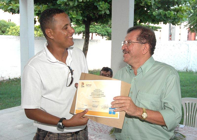 Para promover a qualificação e aperfeiçoamento profissional dos cidadãos aracajuanos, a Fundação Municipal do Trabalho (Fundat) entregou na tarde da última sexta-feira, dia 26, 160 certificados de conclusão de curso profissionalizante. Os cursos foram realizados no bairro Atalaia, através da carreta móvel do Serviço Nacional de Aprendizagem Comercial (Senac), para capacitação de diversos jovens nas áreas de Hotelaria e Turismo. Os cursos integram o Projeto Técnico Social, executado através de uma ação integrada com a Secretaria Municipal de Planejamento (Seplan), Empresa Municipal de Obras e Urbanização (Emurb) e Caixa Econômica Federal (CEF) na região da Atalaia. De acordo com o presidente da Fundat, Edson Freire Caetano, o objetivo é possibilitar aos aracajuanos a inserção no mercado de trabalho e a melhoria da renda familiar através de cursos gratuitos para as comunidades, também com a utilização de veículos itinerantes. Segundo Marta Rocha, coordenadora dos cursos da Fundat, essa é a primeira turma de Hotelaria formada esse ano, através da carreta móvel. Esse trabalho foi desenvolvido para as pessoas da Atalaia e adjacências, por se tratar do bairro que agrega o maior número de hotéis e pousadas. Conseqüentemente, é a área que mais necessita da qualificação na área de Hotelaria, informa a coordenadora. Para Edvaldo Costa Fontes, gerente do Senac, convênios como este são uma grande chance de capacitar as pessoas de baixa renda. As pessoas procuram estes cursos na busca do primeiro emprego, outros já estão no mercado de trabalho, mas precisam se aperfeiçoar no trabalho que já desenvolvem. O resultado são pessoas capacitadas e preparadas para o mercado de trabalho, que está cada vez mais exigente, explica. O formando em agente de Turismo, Valdejânio de Jesus, não esconde a alegria ao receber o certificado. O curso foi muito bom. A forma como somos educados a desenvolver nossas atividades são bem planejadas. Agora estou mais confiante para procurar meu primeiro emprego, comenta entusiasmado. Já a estudante Liliane da Rocha Silva, participou do curso de preparação de drinks e coquetéis e já está utilizando o que aprendeu entre os amigos. O curso é muito interessante. Há coisas que eu nem imaginava como era feito, agora já sei e pretendo trabalhar nesta área para ajudar na renda da família, diz. Além dos moradores do bairro Atalaia, também participaram dos cursos pessoas atendidas pelo Centro de Atenção Psicosocial (Caps) da PMA. Também participaram da solenidade de entrega dos certificados o secretário do Orçamento Participativo, Rômulo Rodrigues; a diretora-presidente da Aracaju Previdência, Rosângela Santana, juntamente com Gilvan Silveira Macedo; representantes do Senac, da Caixa Econômica Federal, dentre outras autoridades. Na ocasião, houve apresentação do Grupo de violino do CRAS Benjamim Alves de Carvalho. Modalidades oferecidas no curso de Hotelaria e Turismo Técnicos de recepção em hotelaria Agente de Turismo Técnicas de garçom Preparador de lanches diversos Preparador de doces e salgados finos Preparador de culinária regional Preparador de doces regionais Preparador de bolos e tortas Preparador de drinks e coquetéis