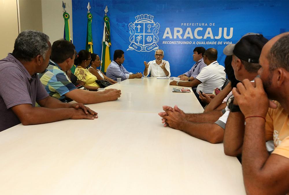 “O prefeito Edvaldo Nogueira cumpriu mais uma promessa, a de proteger o trabalhador”. Foi desta forma que o presidente da Associação de Ambulantes e Feirantes de Aracaju, André Pinto, definiu a entrega dos termos de permissão para 13 feirantes que passarão a atuar no Mercado Albano Franco. O grupo, formado por ambulantes que faziam parte da feira irregular que funcionava nas imediações da Praça João XXIII, no entorno do terminal rodoviário Luiz Garcia, foi recebido nesta sexta-feira, 5, pelo prefeito Edvaldo Nogueira. Além deles, outros 45 ambulantes (que estavam em situação irregular) estão sendo inseridos nas feiras livres da cidade.