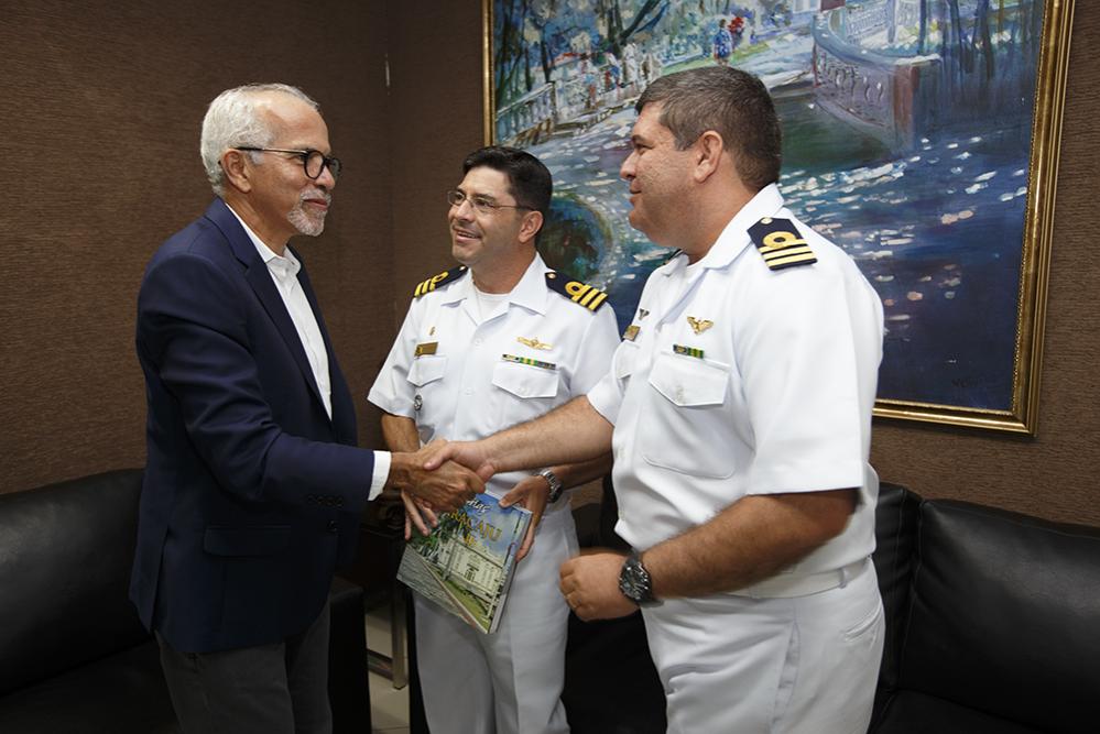 O prefeito Edvaldo Nogueira recebeu, em seu gabinete, nesta sexta-feira, 5, a visita do capitão de fragata da Capitania dos Portos de Sergipe, João Batista Barbosa, e de seu sucessor, Alessandro Black, que assumirá o cargo na próxima semana. Além da apresentação do novo titular da capitania, o encontro serviu para discutir as possibilidades de ações conjuntas entre a prefeitura de Aracaju e o órgão representante da Marinha no Estado.