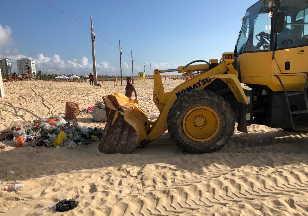 As limpezas nas praias são feitas de segunda a sábado, por duas equipes, que envolve 31 pessoas e é realizado em horários diversos sempre nos turnos da manhã e no final da tarde. Através do método manual, os profissionais usam ferramentas como gadanhamento, pá, sacolas plásticas e um carrinho coletor para recolher o lixo encontrado, já no método mecanizado é utilizado uma saneadora de praia, um trator capaz de recolher pequenos resíduos até objetos de 15 quilos a uma profundidade considerável, controlado por um profissional, enquanto outros acompanham na coleta de lixos maiores.