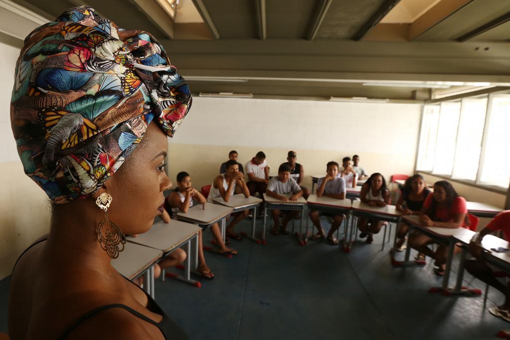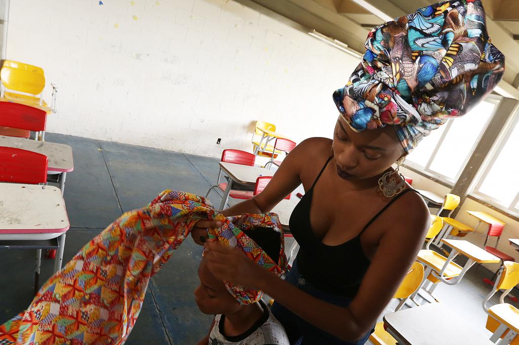 Alunos atentos e dispostos a aprender sobre uso de turbantes, maquiagem para pele negra e confecção de bonecas abayomi. É o caso de Shayllon Marques da Silva, estudante do 9° ano do ensino fundamental. Ele contou que, depois do projeto, passou a prestar mais atenção e se interessar mais sobre cultura africana. Nesta terça, 23, ele optou em fazer a oficina de turbantes, que foi ministrada por integrantes do projeto ‘Por mais turbantes da Rua’.