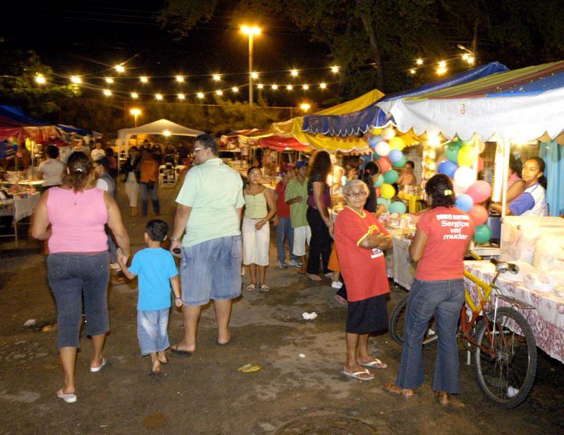A feirante Maria das Virgens mora no conjunto Jardim Esperança, no bairro Inácio Barbosa, há 33 anos. Mas no último sábado, dia 9, ela teve uma noite diferente ao participar com sua banca de comidas típicas do Projeto Freguesia Itinerante. Desenvolvida pela Prefeitura de Aracaju sob a coordenação da Fundação Municipal do Trabalho (Fundat), a iniciativa leva a bairros da capital a oportunidade de gerar emprego e renda para autônomos inclusive os capacitados nos cursos profissionalizantes oferecidos gratuitamente pela Fundação, além de lazer e cultura para as comunidades. Eu já trabalhei em empresas, mas quando fiquei desempregada, fiz os cursos da Fundat aqui mesmo na unidade do Jardim Esperança e voltei a me ocupar, a ganhar dinheiro para ajudar em casa, revelou dona Maria, que já concluiu sua formação em culinária, tortas e bolos confeitados, congelamento, doces e salgados, doces finos e está aprendendo agora a ser confeiteira em geral. Feliz com as vendas no projeto Freguesia Itinerante, ela fez questão de elogiar a qualidade dos cursos da Fundat. Os professores são excelentes e eu tenho aproveitado muito tudo o que aprendi, disse. Proprietária há três anos de um pequeno restaurante em frente à unidade de produção da Fundat, dona Maria das Virgens está participando do projeto pela segunda vez. Vim novamente porque foi lucrativo da outra vez e eu, juntamente com outras colegas, pedimos para que o Freguesia voltasse. É muito bom porque movimenta o bairro e dá oportunidade para que as pessoas ganhem seu dinheiro, avaliou. Acompanhado de atrações musicais sergipanas, o Freguesia Itinerante levou ontem ao Jardim Esperança os artistas Carlos Guerreiro (que em breve se formará no curso de Luteria oferecido pela Fundat), o grupo de dança Lírios do Vale (da Igreja Internacional da Graça de Deus) e os cantores Lena Oliver e Sena. É muito bacana fazer parte de um projeto cultural tão rico como este. A prefeitura está de parabéns, opinou Lena. As amigas Julieta Dantas e Josefina dos Santos, que moram no Inácio Barbosa, montaram sua banca no projeto Freguesia Itinerante pela primeira vez para vender bijuterias, artesanato para decoração e tecidos pintados à mão. É a primeira vez que a gente participa de algo assim, mas eu estou adorando. É muito bom ver que as pessoas têm a oportunidade de expor seus trabalhos num lugar tão organizado e com uma estrutura tão boa, declarou Julieta. É uma noite de trabalho, mas também de lazer, completou Josefina. O projeto Freguesia Itinerante é resultado da integração da Fundat com a Guarda Municipal, que faz a segurança da feira; a Empresa Municipal de Obras e Urbanização (Emurb), responsável pelo palco em que os artistas se apresentam; e a Empresa Municipal de Serviços Urbanos (Emsurb), que cuida da iluminação. A última edição do projeto havia sido realizada em maio, no próprio Jardim Esperança. Desta vez, 28 feirantes se instalaram nas bancas montadas pela prefeitura.