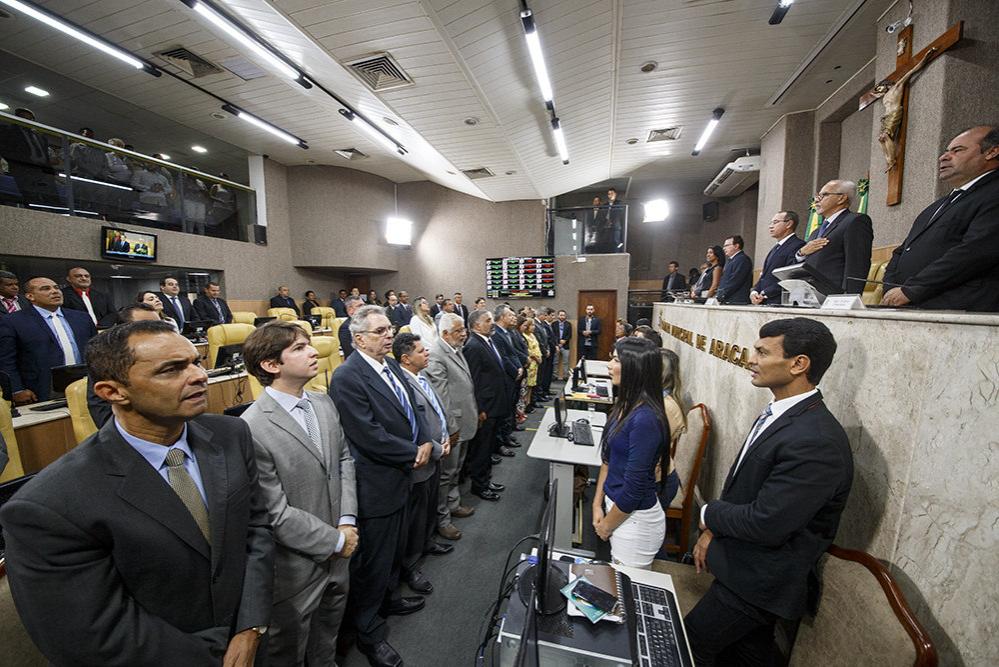 O prefeito Edvaldo Nogueira participou, na manhã desta terça-feira, 20, da abertura dos trabalhos da Câmara de Vereadores de Aracaju. Em seu pronunciamento, ele fez um balanço das ações desenvolvidas no primeiro ano da gestão, com destaque para a política econômica, a retomada de obras, o pagamento dos salários dos servidores em dia e o cumprimento dos compromissos firmados com os aracajuanos. Ao tratar de 2018, o prefeito anunciou o investimento de R$ 300 milhões em obras e a manutenção da política de austeridade. Ele declarou ainda que o ano eleitoral “não afetará em nada” a gestão municipal.