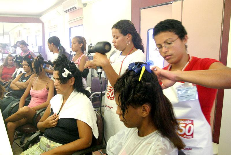 Com o objetivo do capacitar profissionais através do desenvolvimento de conhecimentos, habilidades e atitudes que permitam uma atuação competente no mercado de trabalho, a Fundação Municipal do Trabalho (Fundat), continua executando seu importante papel na sociedade aracajuana. Uma das atividades atuais está sendo desenvolvida no bairro Santa Maria. As aulas estão sendo ministradas diariamente nas carretasescola do Serviço Nacional de Aprendizagem Comercial (Senac), estacionadas no Santa Maria, através de recursos didáticos diversificados, planejados com foco em educar o cidadão aracajuano para o mercado de trabalho, contribuindo também para o exercício da ética e da cidadania. O curso de moda e beleza teve início no dia 21 de agosto e vai até 8 de novembro, com turmas pela manhã e à tarde, com aulas de relações interpessoais, saúde e beleza, negociação, cosmetologia, harmonia e estética, além de tratamento capilar. Trabalho dividido em 72 horas de aulas teóricas e 128 horas de aulas práticas. A metodologia de ensino utilizada privilegia a articulação entre teoria e prática, através de estratégias pedagógicas que buscam assegurar o saber. Desta forma a professora Maria Helena de Carvalho incentiva as alunas a não apenas freqüentar o curso, mas se dedicar àquilo que fazem. Não é só vir e assistir as aulas, tem que participar, questionar quando houver dúvidas e perceber que não é somente um curso, é uma oportunidade de melhorar a renda da família, através do aprendizado de uma nova atividade, explica. Segundo a aluna Lucinéia Marques, 27, o curso é uma oportunidade de conseguir um novo emprego. Com as aulas estou aprendendo muita coisa que não sabia. Não vejo a hora de receber o certificado, acrescentar no meu currículo e poder sair em busca de um novo trabalho, informa. Para Patrícia Fontes, 29, também aluna do curso, aprender é sempre bom e fazer aquilo que gosta é ainda melhor. Essa é a oportunidade que faltava aqui no bairro, temos que abraçar essa proposta de corpo e alma, já que nenhuma outra administração se preocupou tanto com a gente aqui do Santa Maria, comenta entusiasmada.