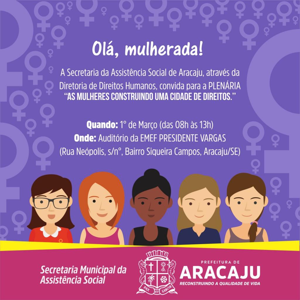 De acordo com a diretora de Direitos Humanos, Lídia Anjos, a ideia é convocar toda a sociedade civil, seja através de grupos organizados ou até mesmo por iniciativa individual, para a construção do Plano Municipal de Políticas Públicas para Mulheres. "É com este pensamento de construção coletiva que nos colocamos à disposição da população como forma de repensar as crenças limitantes dessa cultura patriarcal que faz tantas mulheres vítimas de violência até hoje", destacou a diretora."Este será um grande marco para a apresentação dos eixos norteadores de nossos trabalhos enquanto secretaria, e também a oportunidade de ouvir o que a população tem a nos dizer. Convocamos, inicialmente, todas as mulheres que residem em Aracaju, façam elas parte de algum movimento social ou não. Mas, os homens que se sentirem comprometidos com a causa podem e devem comparecer para dar maior amplitude às discussões", salientou a vice-prefeita e secretária da Assistência Social, Eliane Aquino.