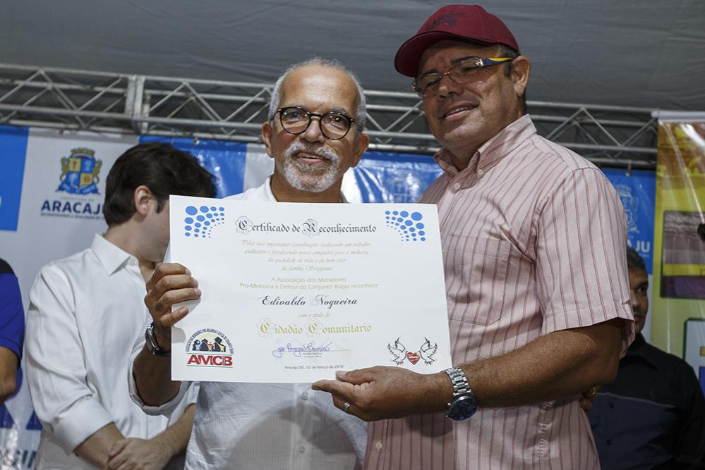 Como forma de agradecer o prefeito pelas realizações no Bugio, a Associação de Moradores do bairro entregou a Edvaldo o título de cidadão comunitário. “Edvaldo é um grande prefeito, que trabalha pelo povo. Merece nosso respeito e nosso reconhecimento”, afirmou o presidente da associação, José Aragão.