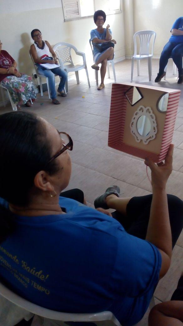 E o público-alvo das ações foi grupo de idosos "jovens há mais tempo", que há 18 anos se reúne todas às quartas-feiras no Centro de Referência Especializada da Assistência Social (Creas) Viver Legal, próximo à USF Fernando Sampaio. "Hoje é um dia muito especial porque estamos comemorando o Dia da Mulher com dinâmicas e atividades físicas. Sempre conciliamos as nossas reuniões com algum tema educativo, e este é preciso sempre discutir, pois a mulher idosa ainda sofre muito preconceito. Temos que desenvolver a autoestima e a valorização pessoal delas", informou a assistente social da unidade, Lara Brito.
