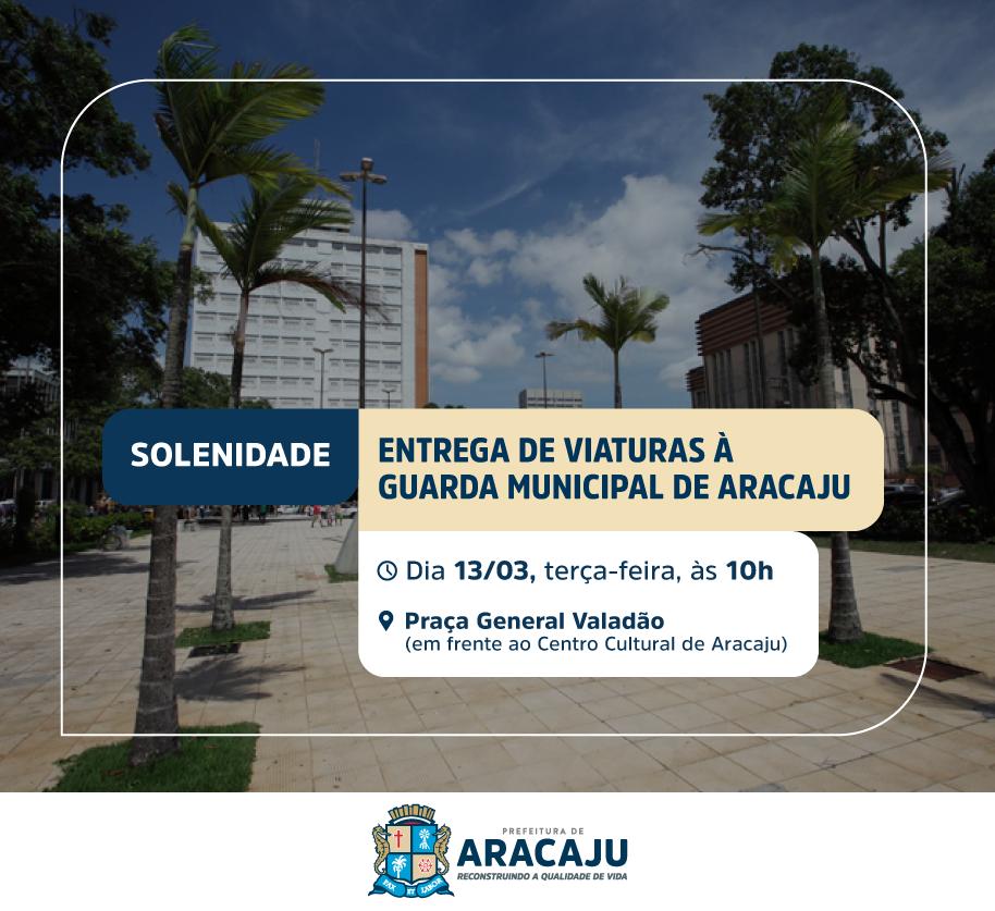 O prefeito Edvaldo Nogueira e o secretário da Defesa Social e da Cidadania, coronel Luis Fernando Silveira de Almeida, convidam a todos para a solenidade de entrega de viaturas para Guarda Municipal de Aracaju (GMA). Ao todo serão entregues 18 veículos. O evento será realizado nesta terça-feira, 13, às 10h, na praça General Valadão, no Centro de Aracaju.