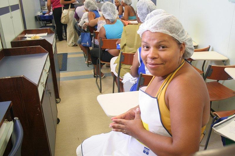 A Prefeitura de Aracaju está promovendo mais um curso de culinária no bairro Santa Maria, ainda dentro do Projeto Técnico Social. Em parceria com o Serviço Nacional de Aprendizagem Comercial (Senac), a Fundação Municipal do Trabalho (Fundat) deu início este mês ao curso de lanches, doces e salgados na carreta-escola do Senac. Desde o dia 5 o curso vem acontecendo para uma turma de 16 alunos, todas as tardes, de segunda a sexta-feira, com término previsto para o próximo dia 29. Segundo a professora do curso, Ângela Lúcia Ribeiro, as aulas vão proporcionar a capacitação de diversos jovens do bairro. Os alunos já saem profissionalizados para obter a própria renda, complementa. Com estes cursos na carreta-escola, a idéia é possibilitar aos aracajuanos a inserção no mercado de trabalho e a melhoria da renda familiar através de cursos gratuitos para as comunidades. Para a aluna Inácia Medeiro de Oliveira, através do curso poderá aperfeiçoar ainda mais os seus dotes culinários. Já fiz outros cursos aqui, como Doces e Salgados Regionais e Bolos. Trabalho com a produção de salgados, então estou aproveitando bastante, adorando mesmo o curso, conta. Único homem no curso, Elias dos Santos se mostrava satisfeito ao participar pela primeira vez dos cursos da PMA. Estou gostando do curso e quero aprender a fazer salgados pra o pessoal de casa, diz Elias. Já Cleane Ferreira Cardoso é uma aluna que participou de mais outros dois cursos da Fundat, como Culinária Alternativa e Cabeleireira. Não trabalho com salgados, mas quero fazer todos os cursos que puder, pois ninguém sabe o dia de amanhã, posso precisar trabalhar em algo e aí estarei habilitada para isso, salienta Cleane.