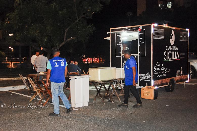 A Empresa Municipal de Serviços Urbanos (Emsurb) realizou na noite desta quinta-feira, 5, uma ação de fiscalização no comércio de food trucks instalados nas quatro praças onde acontece o sistema de rodízio iniciado pela empresa na última segunda-feira, 2.