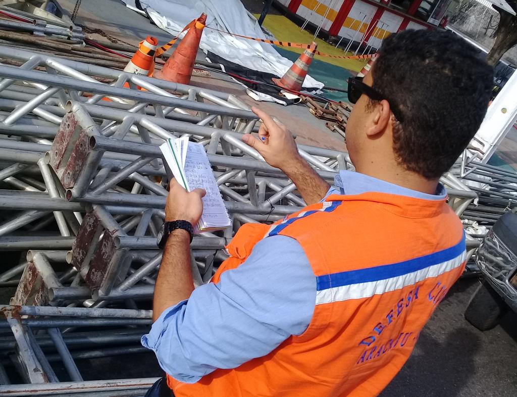 De acordo com o coordenador geral da Defesa Civil de Aracaju, major Sílvio Prado, são realizadas em média três vistorias no local do evento. "Com o início das montagens, geralmente cerca de três dias antes do evento, realizamos vistoria, para que, caso sejam identificados materiais ou peças que não estejam em condições de serem utilizados, nós possamos solicitar a substituição. Nesse momento nós observamos a qualidade do material, a forma como é feita a montagem e os travamentos", explica o coordenador.