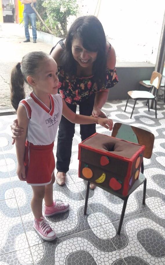 “Trabalhamos isso com os alunos de forma bem leve e lúdica, através do teatrinho de fantoches com uma história que fala de uma criança que não gostava de comer alimentos saudáveis e estava adoecendo com muita facilidade por causa disso. Realizamos, também, da dinâmica da Caixa Mágica, colocamos uma fruta dentro de uma caixa e convidamos algum alguns alunos para colocar a mãozinha dentro para tentar identificar, através do tato, que alimento é”, explica a coordenadora da Coae, Verônica.