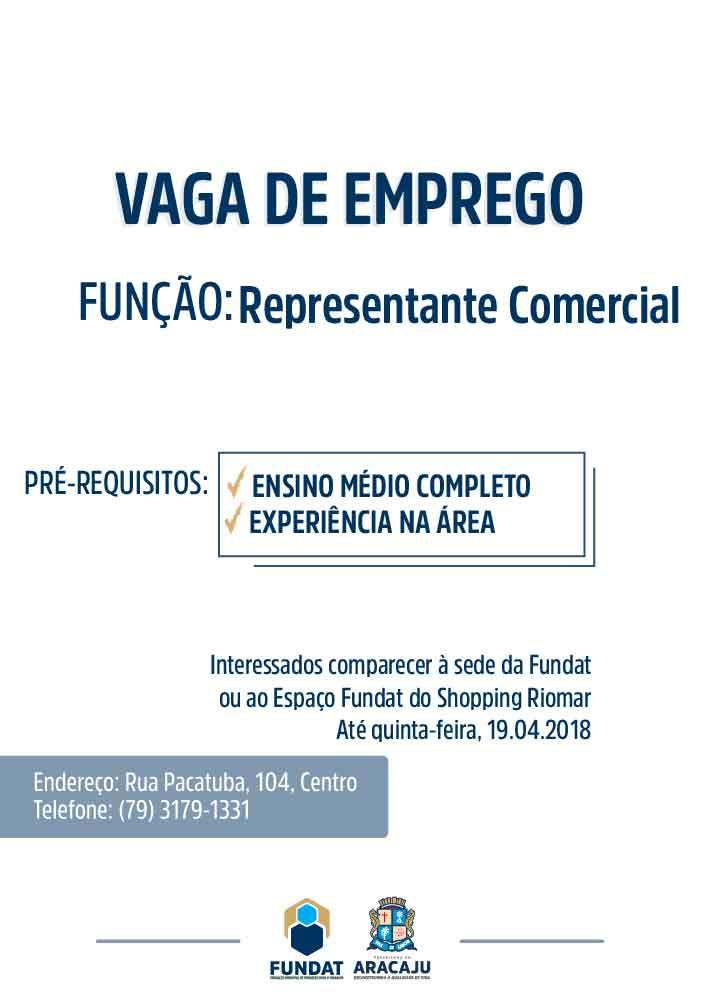 A Fundação Municipal de Formação para o Trabalho (Fundat), através da Agência do Trabalhador, está com oportunidade de emprego para a função de representante comercial. Para concorrer à vaga, o cidadão precisa ter o Ensino Médio completo e experiência na área.
