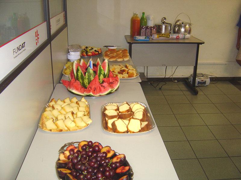 Presidência, diretoria, coordenadores e demais funcionários da Fundação Municipal do Trabalho (Fundat) mais uma vez se reúnem para comemorar os aniversários do mês. A proposta é prestigiar aqueles que estão completando mais uma data natalícia, destacando que a Fundação é uma grande família. É importante a valorização daqueles estão no dia-a-dia conosco, contribuindo para o desenvolvimento dos trabalhos, afirmou o presidente da Fundat, Carlos Magno Costa Garcia. O clima foi de confraternização. A comemoração dos aniversários aconteceu hoje pela manhã, quarta-feira, em um café da manhã com muitas frutas, sucos e delícias regionais. Também não faltou a ornamentação, com bolas de assopro, faixas e velas, apagadas pelos aniversariantes Antônio Fernando Oliveira de Jesus, Maria de Fátima Porto Pereira, Maria Josenilde Alcântara Cardoso, Alecsandro Santos Costa, Lúcio Moraes Santos, Mário Sérgio Freire Fontes e Daniel Menezes Santos. As comemorações aos aniversariantes do mês continuarão acontecendo sempre no primeiro dia útil de cada mês. Contamos com uma equipe coesa, comprometida com os projetos da Prefeitura de Aracaju. Nada mais justo do que passarmos momentos de descontração, confraternização, solidificando os laços de amizade entre todos, destacou Magno.