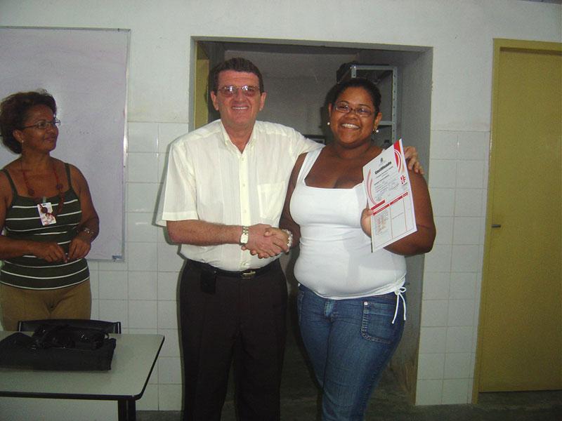 A capacitação profissional dos cidadãos aracajuanos é meta da administração do prefeito Edvaldo Nogueira, acreditando ser o caminho para inserção no mercado de trabalho. A Fundação Municipal do Trabalho (Fundat), órgão voltado para essa área, está dando a sua parcela de contribuição. Desta vez, mais 40 jovens e adultos concluíram os cursos de inglês e espanhol. O treinamento foi realizado na Unidade de Qualificação e Produção do Jardim Esperança. Para ministrar cursos por meio da Fundação, os instrutores passam por uma criteriosa seleção. A nossa intenção é oferecer treinamento com qualidade, com nível equiparado ou ainda melhor aos existentes no país, afirmou o presidente da Fundat, Carlos Magno Costa Garcia. Cada vez mais o mercado de trabalho exige capacitação e o trabalhador que desejar fazer o diferencial no mundo globalizado precisa, sem dúvida, dominar informática e inglês ou espanhol. Recepcionistas, garçons, frentistas, profissionais liberais e, principalmente os jovens que buscam o primeiro emprego, precisam se moldar à nova realidade do mercado. Para a satisfação da equipe da Fundat, o comparecimento foi de 100% nos três cursos oferecidos pela Prefeitura durante os últimos dois meses e meio. O treinando Cleber Wine Oliveira, do curso de inglês, fez uma surpresa para todos no encerramento do curso. Com um violão, cantou em inglês para todos os presentes. Representando a turma, Vanessa Dantas Rocha agradeceu a administração municipal, também em inglês, pela oportunidade da capacitação, lembrando que o curso, mesmo sendo gratuito, teve qualidade e que se sentia preparada para enfrentar o mercado de trabalho. A instrutora Suzana Dantas Rocha esclareceu que o aproveitamento foi surpreendente e que a turma demonstrou interesse. Os laços de amizade foram estreitados, aliados ao aprendizado. Não é a primeira vez que ministro curso pela Fundat. A gente tem o apoio necessário, o que nos dá satisfação no trabalho que desenvolvemos, comentou. O presidente Carlos Magno destacou que é gratificante sentir de perto o resultado do treinamento. É muito bom ouvi-los falar em inglês. Continuem mantendo contato, conversando em inglês e, com certeza, iremos oportunizar o curso avançado, disse. No tocante ao curso de espanhol, ministrado pelo instrutor Robervan Barbosa de Santana, os treinandos classificaram como excelente. Além da teoria, a turma obteve aula prática no Oceanário de Aracaju, com conversação em espanhol, além de visita a restaurante, onde conheceram várias comidas espanholas, a exemplo da paella.