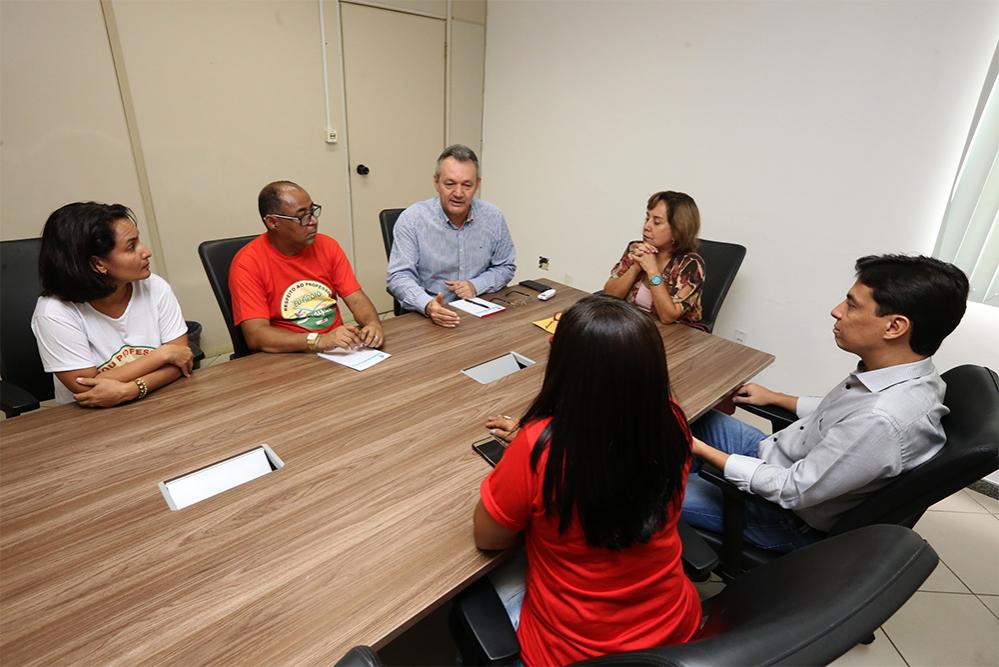 Na manhã desta terça-feira, 24, os secretários municipais do Planejamento, Orçamento e Gestão, da Educação e de Governo, respectivamente, Augusto Fábio Oliveira, Maria Cecília Leite e Renato Telles, receberam os dirigentes do Sindicato dos Profissionais do Ensino do Município de Aracaju (Sindipema), que realizaram um ato em frente ao Centro Administrativo Aloísio Campos.