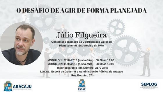Durante o curso, ministrado pelo publicitário Júlio Filgueira os agentes que atuam no gerenciamento e controle de projetos, programas e processos, aprenderão sobre quais os elementos básicos e os momentos metodológicos que constituem o processo de planejamento estratégico, além das bases do sistema de administração estratégica. Também, como se deu a construção do Plano Estratégico da Prefeitura Municipal de Aracaju.