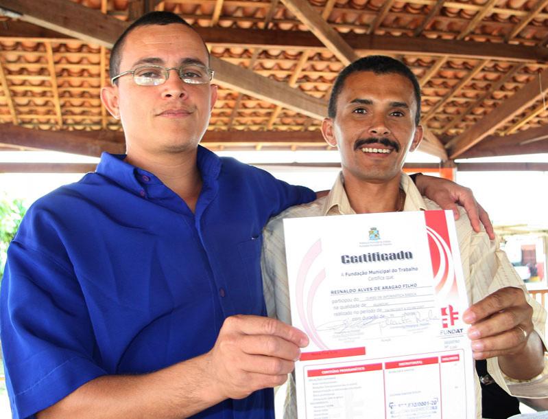 Promover a inclusão digital nas comunidades carentes da capital sergipana tem sido uma marca registrada na atual gestão da Prefeitura Municipal de Aracaju (PMA). Dando continuidade a esse trabalho social, na manhã de hoje, sexta-feira, foi realizado o encerramento de mais um curso de informática oferecido pela Fundação Municipal do Trabalho (Fundat). Dessa vez os beneficiados foram moradores do bairro São Carlos. A turma é composta por 25 alunos, que aprenderam noções básicas de Windows, Word e Excel, por meio de uma carga horária de 80 horas. A coordenadora do Programa de Qualificação Profissional da Fundat, Fátima Porto, que esteve no evento representando o presidente da Fundação, Carlos Magno, ressaltou o trabalho de qualificação profissional que vem sendo desenvolvido pela prefeitura. Nosso objetivo é inserir as pessoas no mercado de trabalho e gerar renda. Além da informática, também oferecemos outros cursos, como por exemplo, cabeleireiro, manicure, pedreiro e mecânico, colocou Fátima, ressaltando que, a pedido do prefeito Edvaldo Nogueira, a PMA vem intensificando esforços no sentido de encaminhar cidadãos de baixa renda ao mercado de trabalho para que eles superem as adversidades e sobrevivam de maneira digna. Agradecimentos O presidente da Associação de Moradores do bairro São Carlos, Adriano Araújo, como forma de gratidão pelo trabalho desenvolvido, entregou o diploma de `Amigo da Comunidade´ para Fátima Porto e pediu que ela o encaminhasse a Carlos Magno. Nossa parceria foi muito importante. Gostaria de agradecer ao doutor Carlos Magno por tudo que tem feito por nós, afirmou. Representante de toda a comunidade do bairro São Carlos, Adriano ainda fez questão de elogiar o prefeito de Aracaju e demonstrar confiança no trabalho que é desenvolvido atualmente pela PMA. Parabenizo também o prefeito Edvaldo Nogueira, que está fazendo uma belíssima gestão e tenho certeza que vai atender a todos os nossos anseios, destacou. Resultados O professor da turma, Luciano Santos, se diz muito satisfeito com o resultado alcançado por seus alunos. Eles não tinham noção nenhuma. Hoje vemos um grande resultado. Na minha visão, eles estão preparados para o mercado de trabalho, enfatizou Luciano, antes de elogiar a atuação da Fundat. É muito importante esse trabalho de inclusão da Fundat. Espero que venhamos a fazer novas parcerias, conclui. Chamada à frente de todos os presentes para ser a porta-voz da turma, a estudante Juliana Souza foi outra que mostrou entusiasmo com a iniciativa da PMA. Queria agradecer por terem nos dado a oportunidade. Tenho certeza de que para todos nós foi um privilégio, afirmou Juliana.