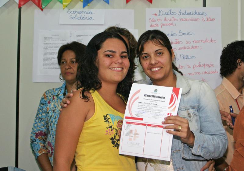 Desde que iniciei o curso já tenho clientes em hotéis e empresas. Bato perna todos os dias e hoje mantenho meus três filhos. Posso dizer que já tenho um ganha pão: fabricar e vender bijuterias, comentou satisfeita Jane Cleide, uma das 16 alunas do curso de fabricação de bijuterias promovido pela Fundação Municipal do Trabalho (Fundat). Na tarde de hoje, quarta-feira, aconteceu o encerramento dos cursos de informática e confecção de bijuterias na unidade da Fundat do bairro Santa Maria. Estiveram presentes na cerimônia o presidente da Fundação, Carlos Magno, e a coordenadora de qualificação profissional da Fundat, Marta Rocha, além de alunos e professores. O presidente da Fundação revela o esforço para levar esses cursos aos bairros economicamente mais necessitados. É com muita alegria que estamos hoje encerrando esses dois cursos. O bairro Santa Maria é um dos xodós do prefeito Edvaldo Nogueira; ele tem um carinho especial por esse bairro. Estamos aqui em nome da Prefeitura para cumprir aquilo que é missão da Fundat, que é qualificação e inserção no mercado de trabalho, destacou Carlos Magno, revelando também a alegria de ter capacitado desde o início de sua gestão mais de 2.500 pessoas. Quero agradecer à Prefeitura por essa oportunidade de fazer o curso de informática, porque é um curso muito importante, principalmente no mercado de trabalho. Qualquer trabalho que você vá atrás você tem que ter o curso de informática; ou você tem, ou você não trabalha, disse a aluna Tereza Cristina. A instrutora do curso de bijuteria, Geovânia Evangelista, ressaltou na ocasião a importância de se ter uma qualificação profissional. O curso é muito proveitoso, porque são pessoas que necessitam realmente de uma capacitação. Elas aprendem a ganhar dinheiro e isso faz com que elas se estimulem e obtenham seu próprio rendimento, reforçou a instrutora, informando ainda que, para fazer uma peça, são gastos de R$ 3 a 4, vendidos por R$ 15 ou 20. Uma sandália enfeitada dessa na Europa custa por volta de R$ 100. Tudo vai depender do primor com que são feitos, garantiu Evangelista. É muito gratificante trabalhar no setor de cursos da Fundat, porque a gente trabalha levando alegria e conhecimento, que é algo que a gente carrega para o resto da vida. O objetivo da Fundat é a geração de emprego e renda; fico feliz em ver um resultado desse. Estamos aqui para oferecer o que temos de melhor para a população, comentou a coordenadora de Qualificação Profissional da Fundat, Marta Rocha. A batalhadora Jane Cleide, que com um pouco mais de um salário mínimo sustenta sozinha seus três filhos, aguarda pelos novos cursos da Fundação. Com que palavras eu posso agradecer? Pode parecer um gesto simples, mas com certeza mudou minha vida, revelou.