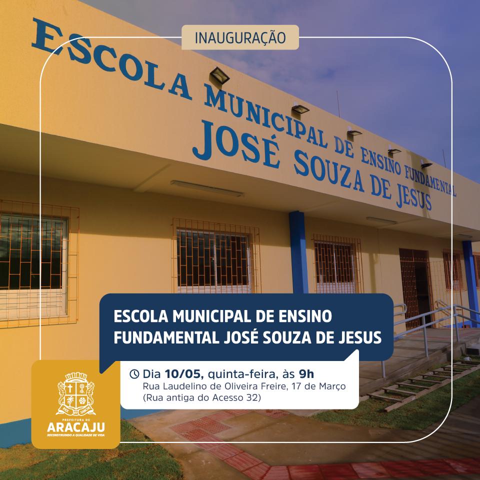 O prefeito Edvaldo Nogueira e a secretária municipal da Educação, Maria Cecília Tavares Leite, convidam a todos para a inauguração da primeira escola de ensino fundamental do bairro 17 de Março, zona Sul, a Emef José Souza de Jesus. A solenidade acontece nesta quinta-feira, 10, às 9h, na própria unidade de ensino.