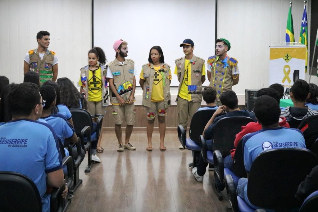 O Grupo Cones de Teatro realizou uma apresentação nesta terça-feira, 15, na Escola do Sesi, na avenida Tancredo Neves. Além da apresentação, policiais Rodoviários Federais (PRF) e médicos do Samu ministraram palestras sobre acidentes e vítimas de trânsito. A atividade faz parte da programação do Maio Amarelo.