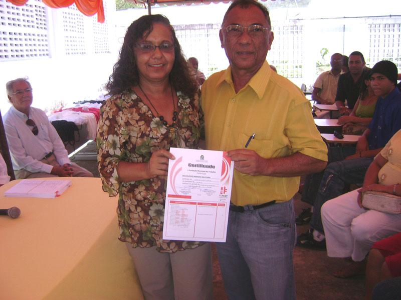 Em clima de confraternização, mais de 90 alunos receberam ontem, segunda-feira, certificados de conclusão de cursos profissionalizantes, disponibilizados pela Prefeitura de Aracaju/Fundação Municipal do Trabalho (Fundat). O ato aconteceu nas dependências da Unidade de Qualificação e Produção do Jardim Esperança, localizada na rua Jupter, S/N. Líderes comunitários, presidentes de associações de bairros, instrutores, entre outras representações, prestigiaram o evento, consolidando a proposta da Fundação em estar presente nas comunidades, levando a qualificação profissional e outros serviços inerentes ao órgão. Os treinandos presentes ao evento concluíram os cursos de informática, cabeleireiro e corte e costura. A comunidade do Jardim Esperança reúne cerca de 3.600 pessoas. Desse número, a Fundat já qualificou em torno de 1.300. Desde a inauguração daquela unidade, a Prefeitura de Aracaju vem oportunizando aos moradores cursos nas mais variadas áreas, a exemplo de lutheria (reforma e confecção de violões), inglês, espanhol, informática, hortaliças, culinária, entre outros. A diretora técnica da Fundat, Rosana Amaral, prestigiou o evento representando o presidente da fundação, Carlos Magno Costa Garcia. Também se fizeram presentes o coordenador do Credpovo Um Banco para todos, Jorge Lobo, e a diretora administrativa e financeira, Vanda Fonseca. Os instrutores Maria Aparecida, Edjones, Cléa, Santos e Ana Angélica, compareceram ao ato para solidificar o apoio aos seus treinandos. As alunas Maria Renildes, Rosângela J. Santos e Márcia Menezes, representantes dos cursos de corte e costura, cabeleireiro e informática, respectivamente, agradeceram à Prefeitura de Aracaju pela oportunidade da profissionalização. Já o professor José Santos, do curso de cabeleleiro, representou os demais instrutores. A Fundat é um órgão sério. Os técnicos cobram da gente e acompanham o nosso trabalho. É gratificante repassar os meus conhecimentos e saber que muitos dos meus alunos estarão desenvolvendo a atividade e gerando a sua própria renda, afirmou. A diretora técnica da Fundat, Rosana Amaral, iniciou suas palavras afirmando que um quilômetro se inicia ao primeiro passo e lembrou que os treinandos devem seguir em frente. A Prefeitura de Aracaju está cumprindo o seu papel, promovendo a capacitação profissional para o cidadão, o que contribui para a inserção no mercado de trabalho ou ainda, na formação de cooperativas de trabalho, apontou.