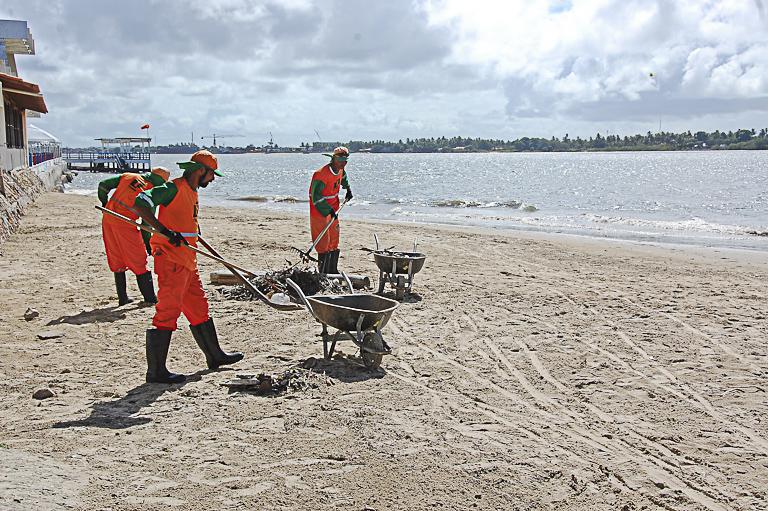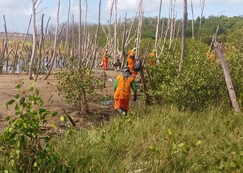Nesta quinta-feira, 24, os agentes executaram diferentes frentes de trabalho como a coleta de resíduos da área do manguezal e da faixa de areia da Praia Formosa, no bairro 13 de Julho, e o serviço de capinação no Porto Dantas, na zona Norte da cidade.