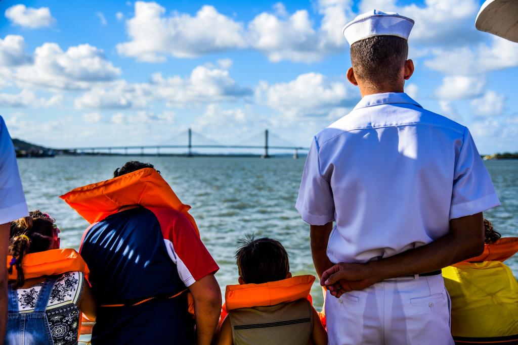 O capitão de fragata, Alessando Black, destaca que é uma possibilidade de conhecer a instituição. “Estamos proporcionando um dia para que essas crianças acolhidas possam conhecer ainda mais a Marinha Brasileira, como instituição forte e regular no Brasil inteiro, que está aqui para defender não só os direitos deles, mas de toda população brasileira. Também, acredito que estamos fazendo com que elas vislumbrem no futuro tudo isso como uma opção de vida, fazendo com que enxerguem a possibilidade de atuar conosco, estudar e ter uma vida digna e honesta”, observa o Capitão dos Portos, o capitão de fragata Alessandro Black.