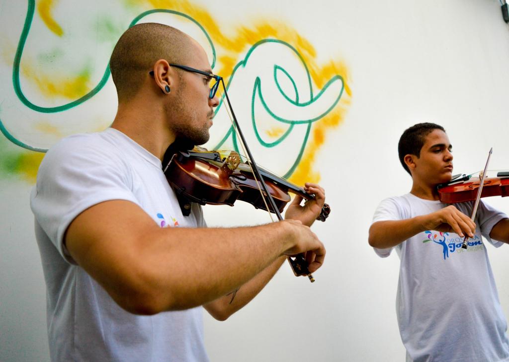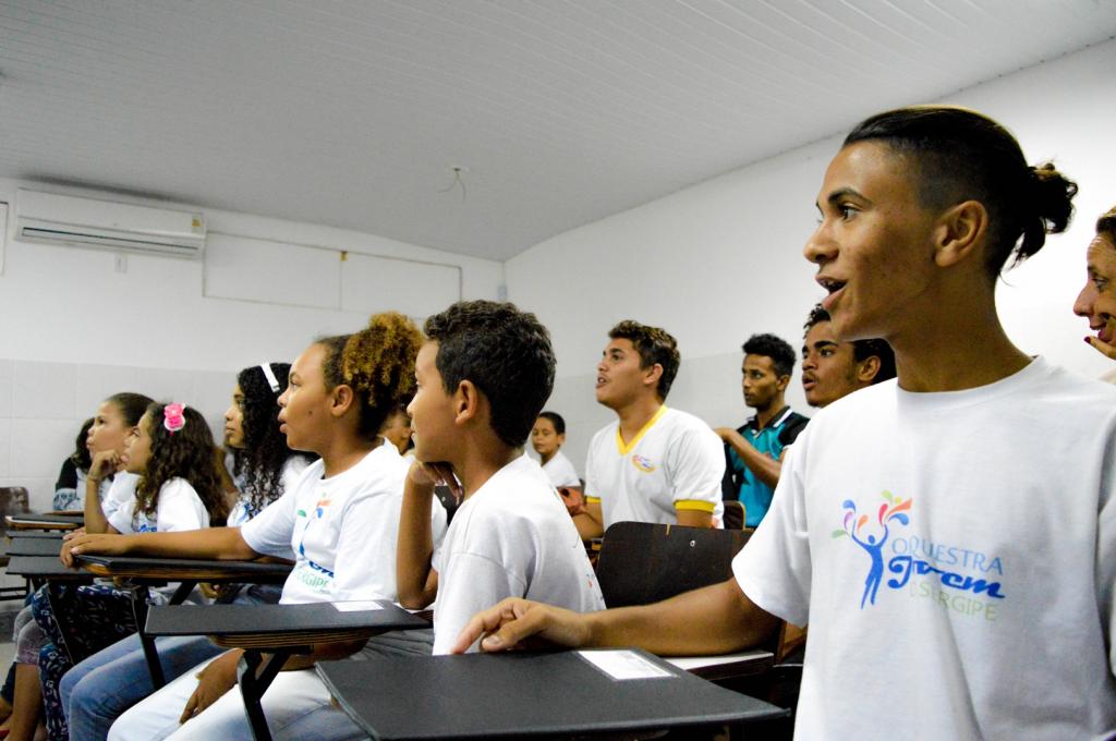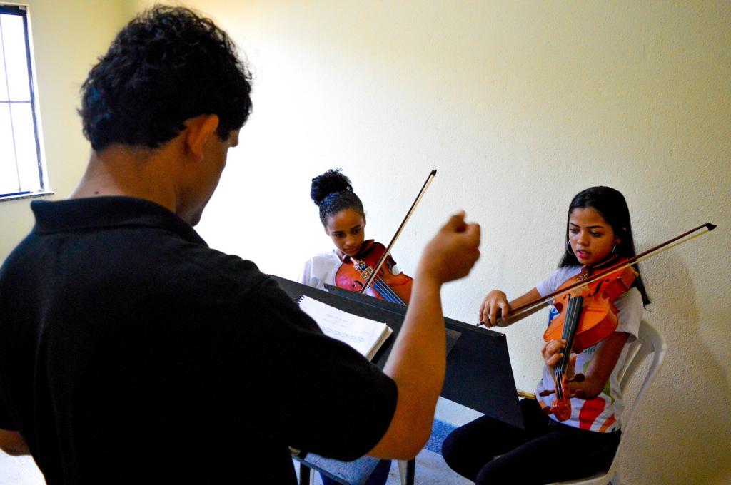 As melodias de instrumentos de cordas, a exemplo da viola, podem ser ouvidas por quem passa à tarde no Centro de Referência da Assistência Social (Cras) Santa Maria. A unidade da Secretaria Municipal da Assistência Social de Aracaju disponibilizou duas salas para ensaios da Orquestra Jovem de Sergipe, onde cerca de 20 integrantes da Orquestra participam de ensaios com professores de música na instituição.