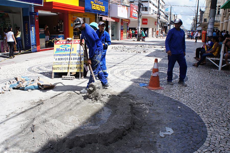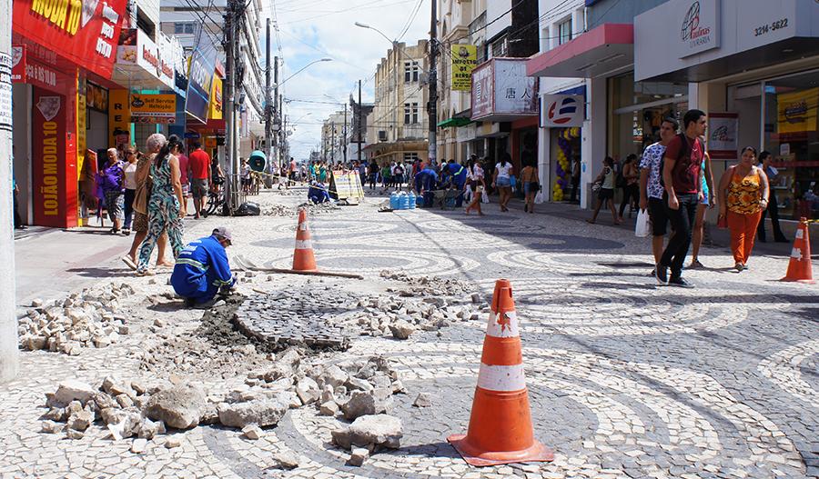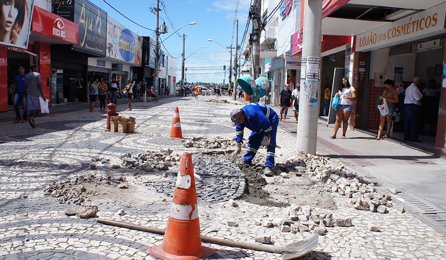 Símbolos das transformações urbanísticas ocorridas em Aracaju, os calçadões das ruas João Pessoa e Laranjeiras possuem um comércio diversificado que atrai diariamente centenas de pessoas, entre funcionários das lojas, consumidores, turistas e visitantes de várias partes do estado e do Brasil. Neste local cheio de história e que sintetiza as características socioeconômicas da capital, a Prefeitura de Aracaju, por meio da Empresa Municipal de Obras e Urbanização (Emurb), tem trabalhado nos últimos dias para restaurar o pavimento de pedras portuguesas que embelezam o ambiente do Centro Comercial.