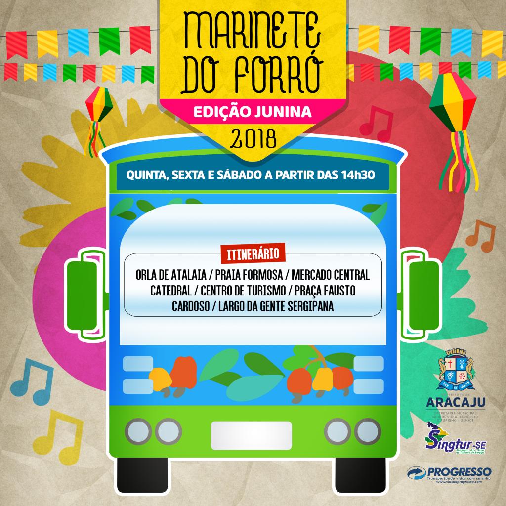 Durante o mês de junho, a Marinete do Forró sairá todas as quintas e sextas-feiras das imediações do Oceanário, às 14h30, fazendo o seguinte roteiro: Praia Formosa (15min); Largo da Gente Sergipana (15min); Mercados Centrais (40min); Centro de Turismo (30min), finalizando o passeio na Orla da Atalaia. O percurso dura em média quatro horas, com previsão de retorno às 18h30.
