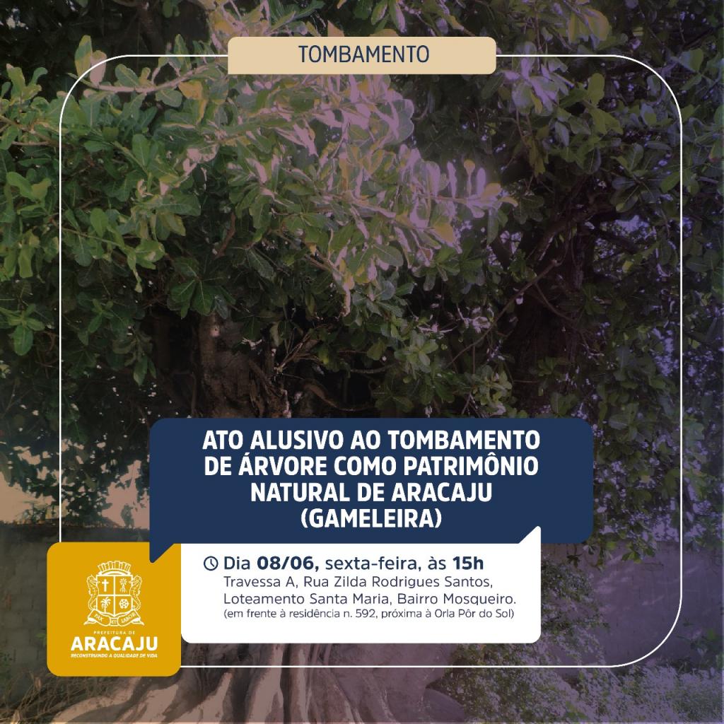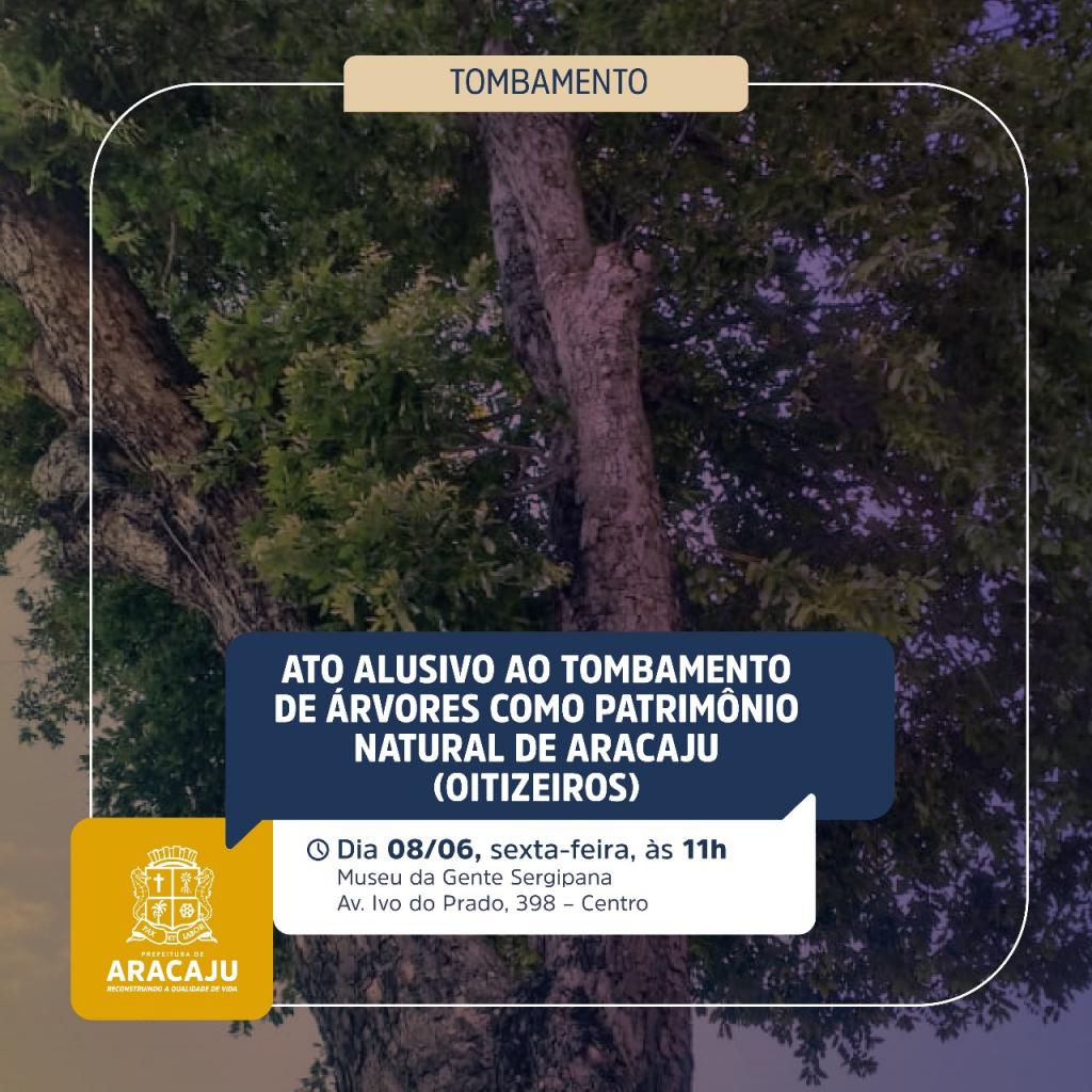 O secretário municipal do Meio Ambiente de Aracaju , Augusto Cesar Viana, convida a todos para atos alusivos ao tombamento de três árvores situadas na capital sergipana. Elas receberão o título de Patrimônio Natural de Aracaju.
