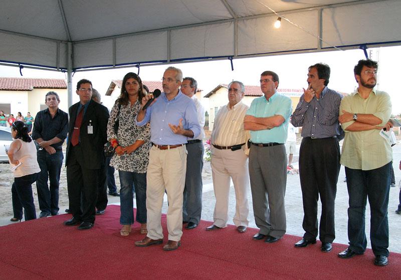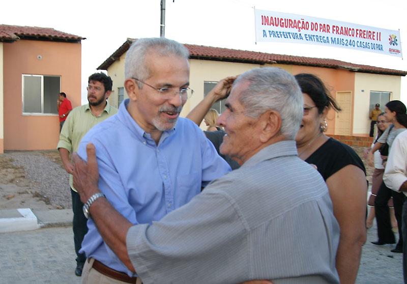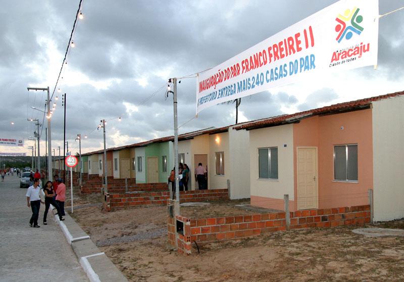 Duzentas e quarenta famílias realizaram na tarde da última quinta-feira, dia 1º, o sonho da casa própria, com a inauguração do residencial Franco Freire II, no bairro Mosqueiro. A concretização veio através do Programa de Arrendamento Residencial (PAR), desenvolvido pela Prefeitura Municipal de Aracaju (PMA), por meio da Fundação Municipal do Trabalho (Fundat), em parcria com o Governo Federal, através da Caixa Econômica. É uma alegria muito grande participar desse momento importante na vida de cada um de vocês, que representa a esperança de uma vida nova, numa casa nova, numa casa própria. Nesse um ano e sete meses do meu governo, nós já entregamos quase 800 residências, mostrando o compromisso da Prefeitura de Aracaju com a melhoria da qualidade de vida do cidadão, com o social. Hoje a habitação é um dos graves problemas que as cidades enfrentam e esse projeto permite que as pessoas possam ter uma casa. A Prefeitura e o Governo Federal investiram R$ 131 milhões, gerando emprego, renda e desenvolvimento para o município de Aracaju e para o Estado de Sergipe, afirmou o prefeito de Aracaju, Edvaldo Nogueira. Edvaldo e as autoridades presentes conheceram a estrutura das casas, que contam com dois quartos, sala, cozinha e banheiro. Em seguida, fizeram a entrega das chaves a três arrendatários. Entre eles, Alan Silveira Lima Costa, que comemorou a conquista com a família. Eu morava na casa dos meus pais e graças a Deus estou conseguindo essa vitória; depois de tantos anos de trabalho poder dar esse conforto para a minha família, contou. O presidente da Fundat, Carlos Magno, ressaltou o valor acessível da prestação para o arrendatário, que ficou em R$ 176,82. O grande ganho do arrendatário é no custo do imóvel, na prestação, que é reduzida, porque a Prefeitura faz a infra-estrutura e reduz impostos. É um projeto habitacional de baixo custo e para uma faixa que não teria condições de entrar num financiamento que não fosse um programa de arrendamento, afirmou, lembrando que após cinco anos o arrendatário pode quitar sua prestação, usando o Fundo de Garantia por Tempo de Serviço (FGTS) ou qualquer outro tipo de financiamento. O presidente da Empresa Municipal de Obras e Urbanização (Emurb), Valmor Barbosa, explicou outras ações feitas diretamente pela PMA no residencial. A empresa contratada para fazer o empreendimento faz toda a infra-estrutura, drenagem, pavimentação, água e esgoto. A Prefeitura faz os acessos públicos e a iluminação das avenidas. Nesse caso específico, a Emurb fez uma parceria com a empresa contratada nessa rua, que fica na frente do residencial e em outra de acesso, através da qual nós entramos com equipamentos e materiais, informou. O prefeito falou ainda sobre o fato do período para entrega desse residencial ter sido maior com relação aos demais do PAR. Esse residencial demorou para ser entregue porque nós percebemos que existiam algumas questões a serem resolvidas. Primeiro a licença ambiental, que demorou; segundo, problemas de drenagem, de esgoto, que a gente foi aos poucos resolvendo para que quando entregássemos as casas, elas tivessem em perfeito estado. Tem sido esse o nosso modo de governar: fazer aquilo que é melhor para a população. Para isso, nós temos trabalhado diuturnamente, apontou. Destaque nacional Esse é o 35º condomínio do PAR inaugurado em Aracaju, atingindo a marca de 6.162 unidades habitacionais entregues. Aracaju é um destaque nacional do PAR. Primeiro pela quantidade de unidades produzidas, que já chega a 7 mil entre construídas e em construção. A outra questão é a ocupação; nós não temos sobra ou ociosidade de imóveis do PAR. O terceiro é que a nossa inadimplência é baixa, o que permite que possamos continuar com o programa aqui em Aracaju, afirmou o superintendente da Caixa Econômica em Sergipe, Gilberto Occhi. O presidente da Fundat, Carlos Magno, falou ainda sobre os novos empreendimentos do PAR para a capital. No total, são 6.340 residências este ano. Já para o próximo ano, estão em construção dois novos conjuntos: 160 apartamentos na avenida Santa Cleide e 140 no Santa Lúcia. Além disso, já há outros empreendimentos em vista e a Caixa está sinalizando para nove novos empreendimentos, adiantou. Também estiveram presentes na inauguração o vereador Francisco dos Santos (Chico Buchinho); a presidente da Associação dos Moradores da Área de Expansão, Karina Drumond; os secretários municipais Bosco Rolemberg (Governo), Carlos Cauê (Comunicação Social), Fabiana Pinho (Chefia de gabinete do prefeito), Tereza Cristina (Educação) e Jeferson Dantas (Finanças); representantes da construtora Santa Maria; além de gerentes da CEF.
