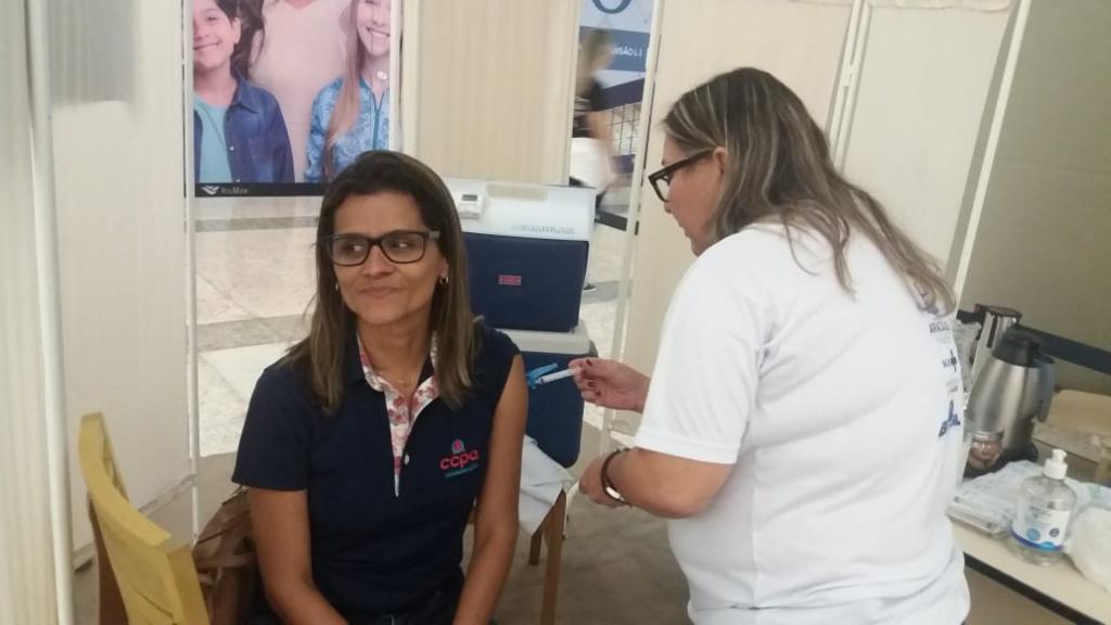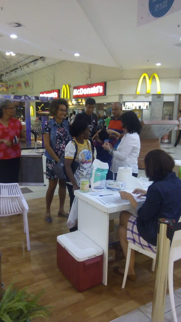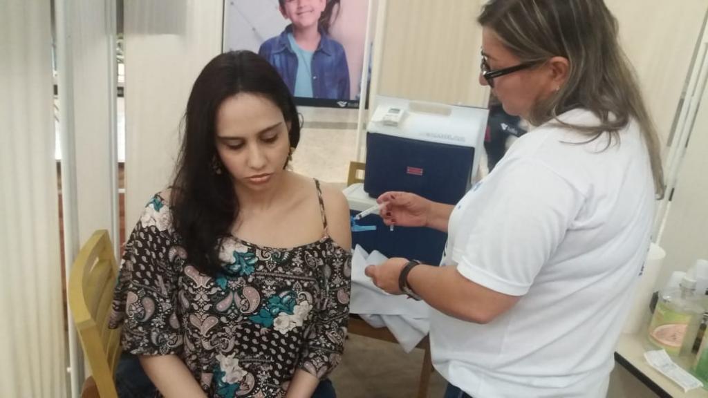 A professora de Biologia, Glaucia Lima, viu o ponto de vacinação durante a ida ao Riomar para pagar algumas contas. “Achei ótimo, porque eu não tive tempo de ir a uma unidade de saúde para me vacinar. Aproveitei a chance e acho fundamental essa prevenção de doenças. Esta época do ano é muito propícia a gripes e resfriados, e eu não quero adoecer nem transmitir para os meus alunos. Assim eu fico mais tranquila”, declarou.
