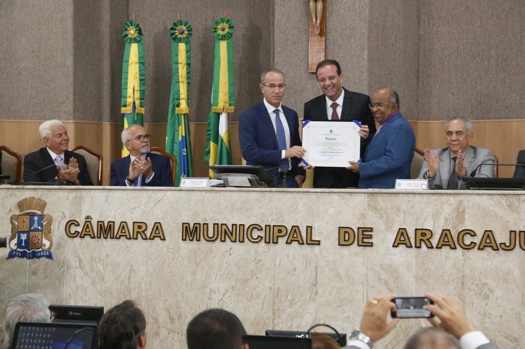 Em nome da Câmara, o vereador Thiaguinho Batalha disse que “Aracaju voltou a sorrir com a relação republicana entre Edvaldo e André”. Autor do título, o ex-vereador Daniel Fortes reforçou que “mesmo sendo de um agrupamento político diferente, o prefeito Edvaldo prestigiou a entrega do título como forma reconhecer o apoio de André na liberação de recursos para Aracaju”.