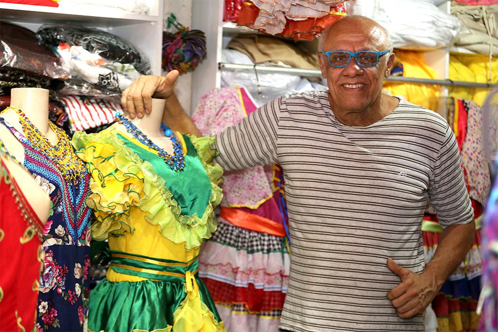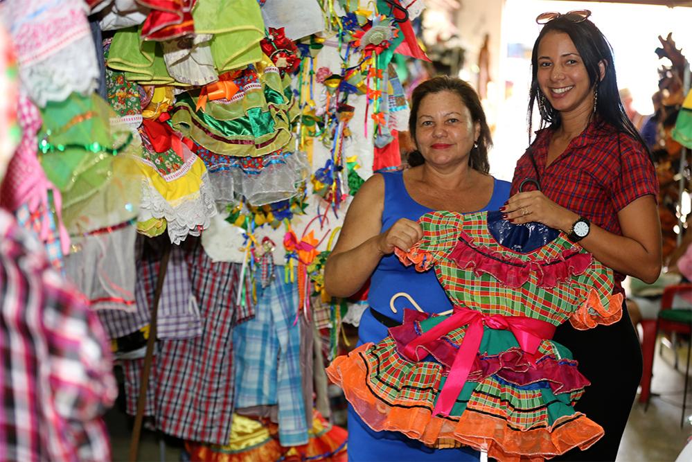 Há 40 anos, Bernadete Santos fabrica e vende suas próprias roupas juninas no mercado Maria Virgínia Leite Franco (antigo  Albano Franco). Para ela, o São João é a época que mais vende. "Neste mês as vendas cresceram 70%, a procura começou em abril. As mães são as que mais compram por causa das festas juninas dos filhos nas escolas, mas tem gente que leva para as festas do condomínio ou para vestir na noite de São João", relatou.