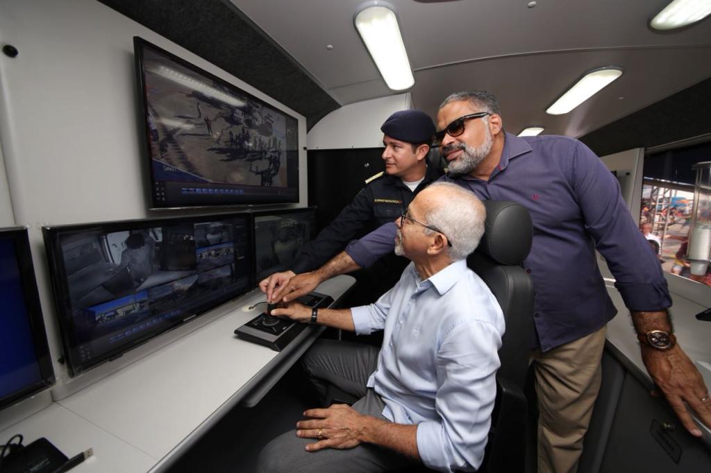 O primeiro local a ser conferido pelo prefeito foi mais uma novidade dentro do Forró Caju, um ônibus de monitoramento da Guarda Municipal de Aracaju (GMA) totalmente equipamento para ajudar no trabalho que será realizado pelos guardas durante os dias de festa. Enquanto câmeras de segurança estarão capturando imagens de toda a extensão da praça de eventos Hilton Lopes, agentes farão o serviço ostensivo em todo o espaço contando com mais esse auxílio. Logo em seguida, Edvaldo Nogueira percorreu os demais espaços estruturados e que já estão quase 100% prontos, como os palcos Luiz Gonzaga e Gerson Filho e demais estruturas como os camarotes, inclusive o da Acessibilidade, e demais dependências como a da Saúde.