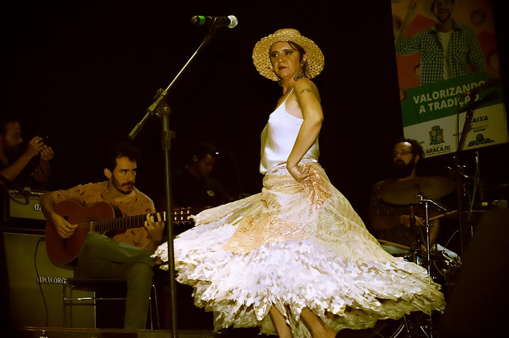 “Este show é uma homenagem as vozes da restinga sergipana, que são as catadoras de mangaba, de aratu e as artesãs. É a primeira vez que lanço em Sergipe, e logo no ciclo junino, que tem tudo a ver com a época de colheita delas. O projeto foi inspirado através da pesquisa musical da Meire Barreto, que descobriu esse tesouro sonoro das vozes da restinga”, explicou a cantora.