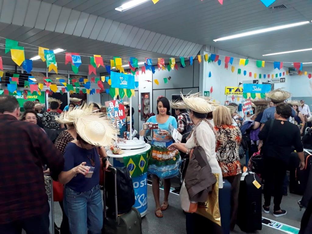 No saguão de desembarque, outra novidade: ao som do autêntico forró pé-de-serra, casais de dançarinos esbanjavam simpatia e muito xote, xaxado e baião. E para não ficar sem aquela carinha junina, chapéus de palha foram espalhados na esteira das bagagens para que os turistas entrassem no clima de festa.
