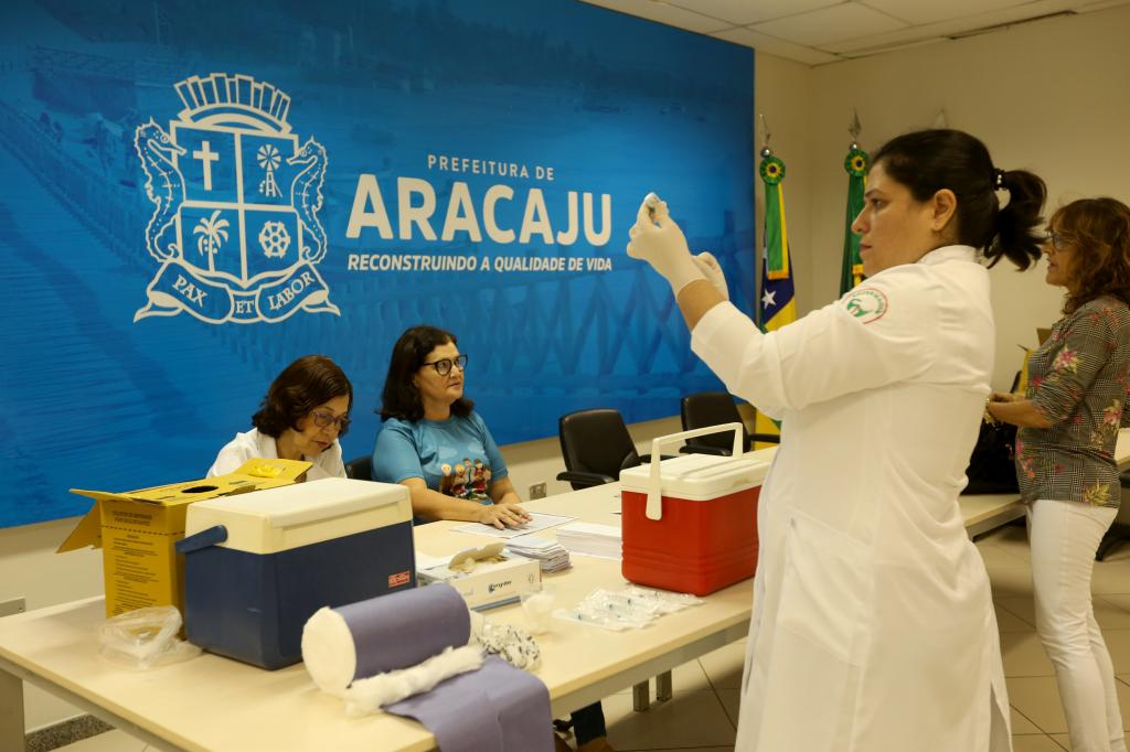 Aconteceu nesta terça-feira, 26, mais uma edição do Projeto Servidor Saudável que desta vez teve como público-alvo os servidores com idade dos 50 aos 59, lotados no Centro Administrativo Prefeito Aloísio de Campos (sede da Prefeitura) que foram vacinados contra a influenza - gripe. A ação executada pela Secretaria Municipal do Planejamento, Orçamento e Gestão (Seplog), em parceria com a Secretaria Municipal da Saúde (SMS), faz parte das propostas elencadas no Planejamento Estratégico capitaneado pelo prefeito Edvaldo Nogueira. Durante todo o dia foram aplicadas 50 doses da vacina.
