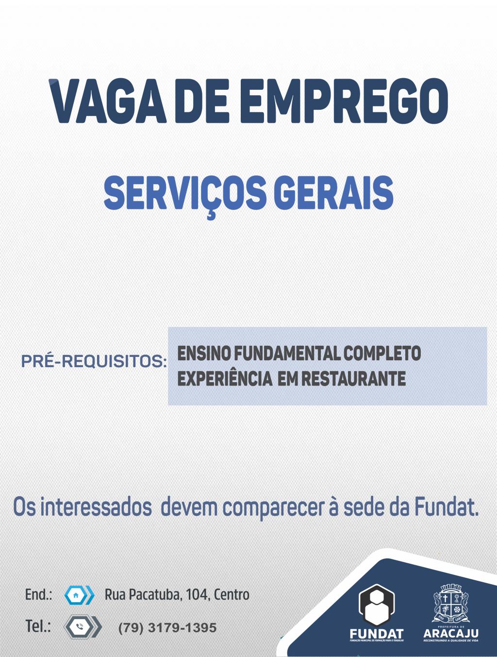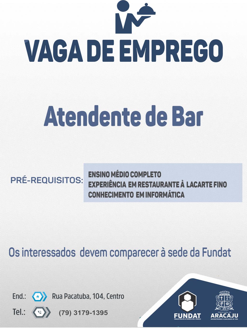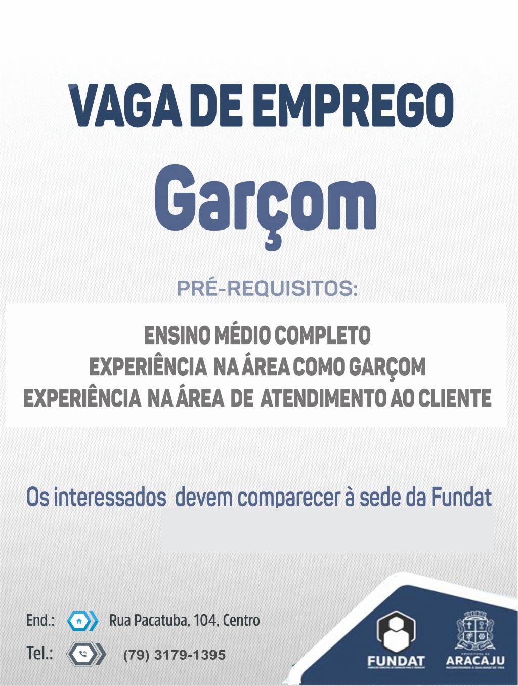 A Fundação Municipal de Formação para o Trabalho (Fundat), por meio da Agência do Trabalhador, continua anunciando oportunidade de emprego para quem deseja ingressar ou retornar ao mercado profissional. São diversas vagas nas seguintes áreas de atuação: garçom, mecânico a diesel, analista contábil, analista de suporte, cumim, passante de salão, atendente de bar, serviços gerais, hostess e vendedor de moda feminina.