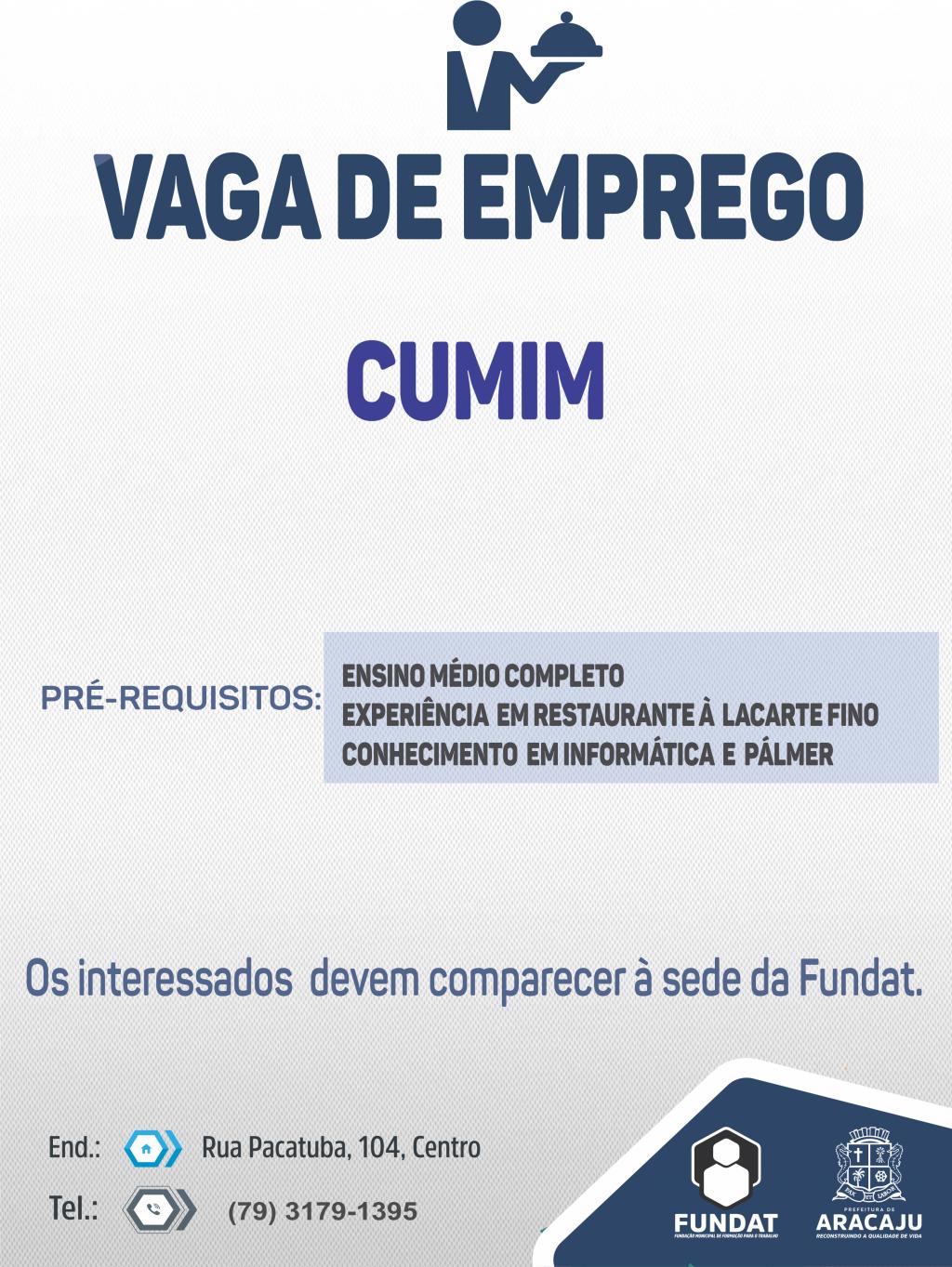 - Função: cumim (auxilia o garçom no atendimento e serve refeições e bebidas aos clientes em restaurantes, bares, clubes e eventos. Organiza mesas e utensílios e limpa salão)