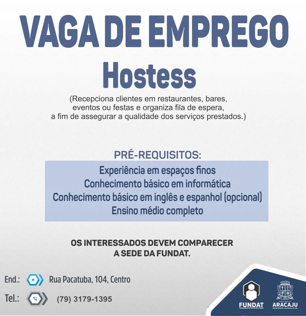 Função: hostess (Recepciona clientes em restaurantes, bares, eventos ou festas e organiza fila de espera, a fim de assegurar a qualidade dos serviços prestados)