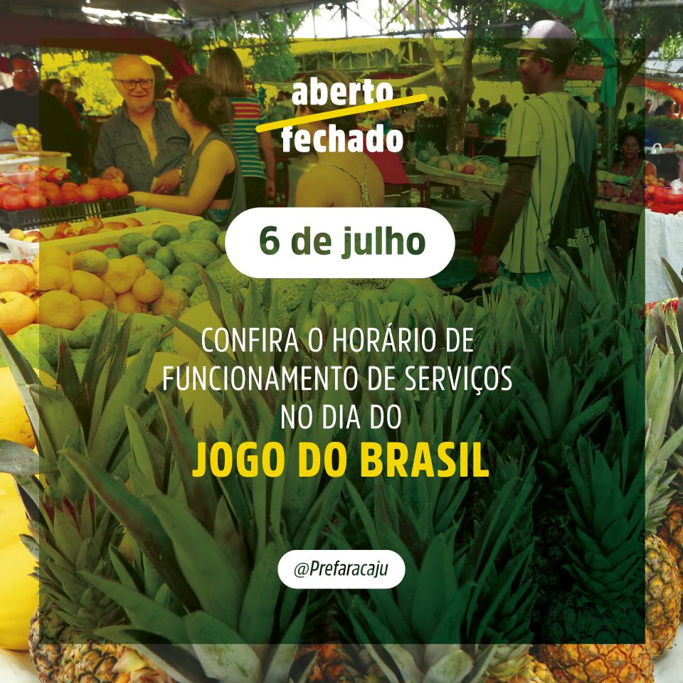 De acordo com decreto assinado pelo prefeito Edvaldo Nogueira, nesta sexta-feira, 6, os órgãos que compõem a Prefeitura de Aracaju terão horário de funcionamento diferenciado. A medida foi devido à participação da Seleção Brasileira na fase de quartas de final na Copa do Mundo.